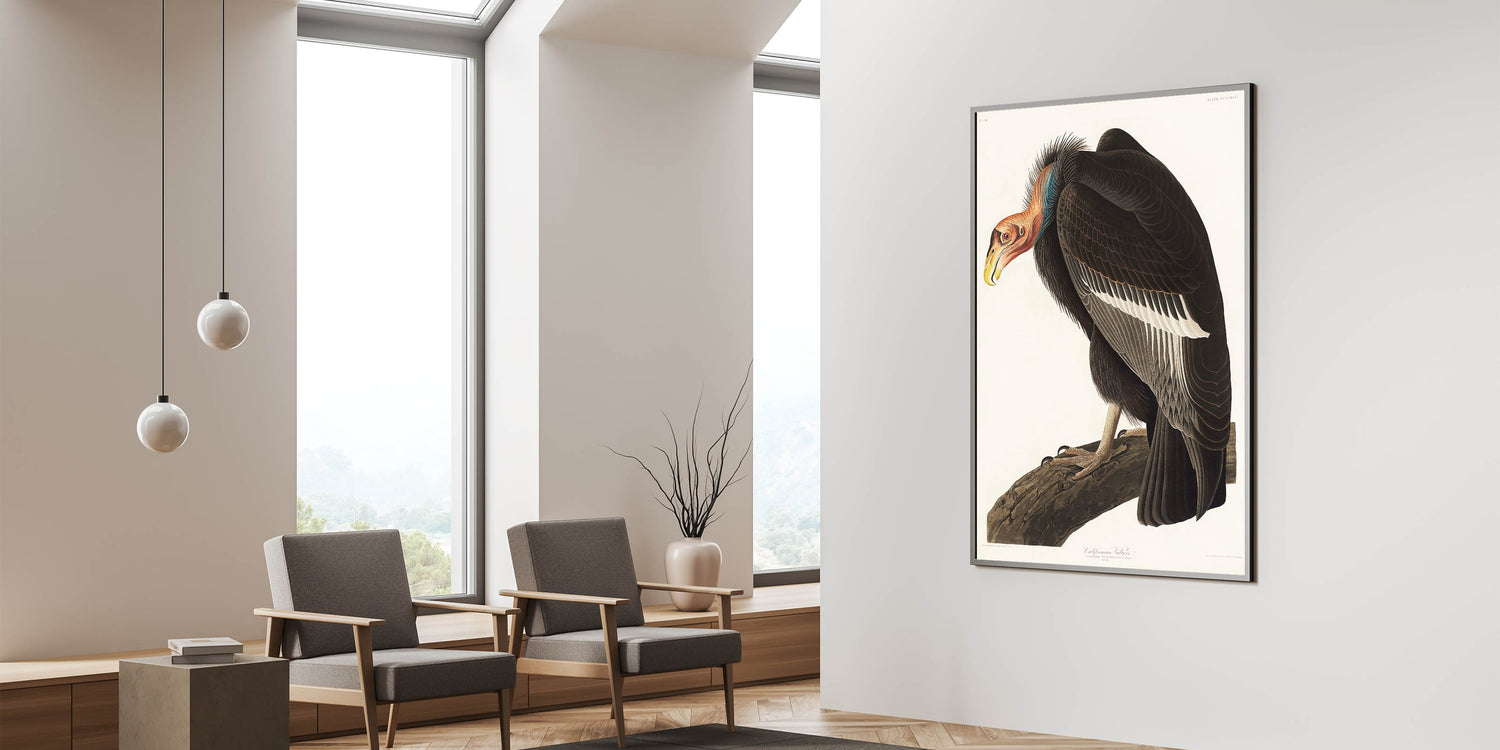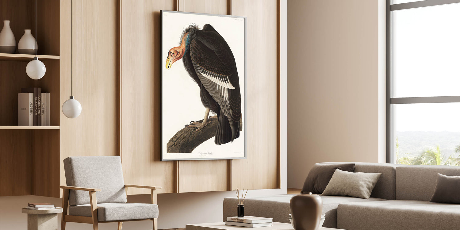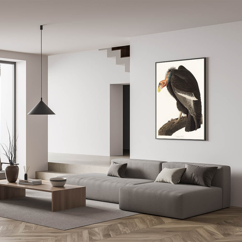 Bring the majesty of the natural world into your home with this Romanticism-style artwork, "Californian Vulture," from Birds of America (1827) by John James Audubon. This extraordinary illustration captures the detailed texture of the vulture’s feathers, its powerful stance, and the vibrant hues of its head. A perfect combination of scientific precision and artistic emotion, this piece embodies the Romantic era’s deep connection to nature and wildlife.