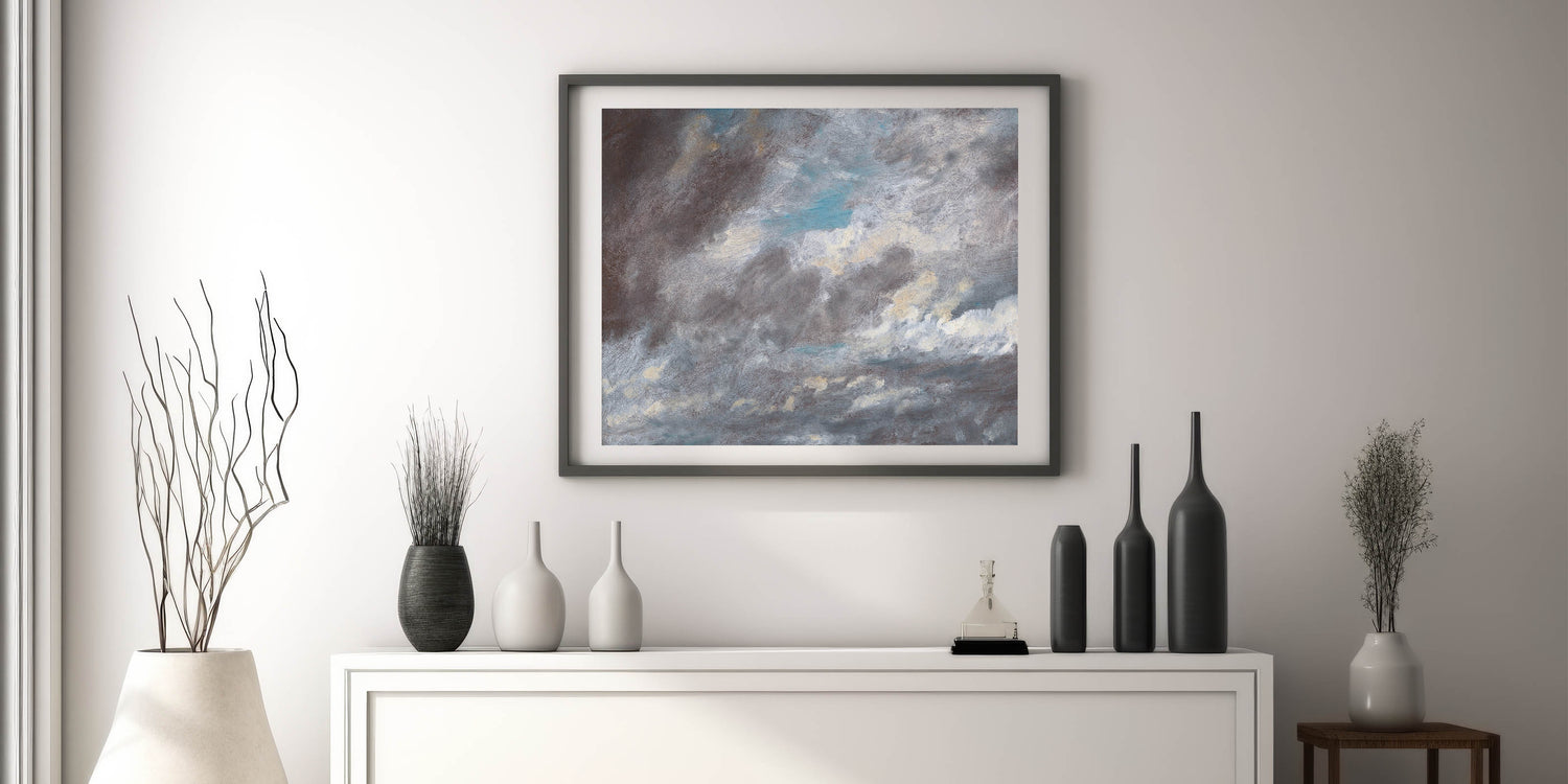 Immerse yourself in the serene beauty of Romanticism style wall art with this breathtaking Cloud Study by the masterful artist John Constable. Painted in 1821, this piece captures the ethereal movement of clouds and the dramatic interplay of light and shadow, embodying the essence of classic Romantic paintings. The delicate strokes and rich textures make this artwork a perfect choice for historic and cultural wall decor, bringing an air of timeless elegance to any space.