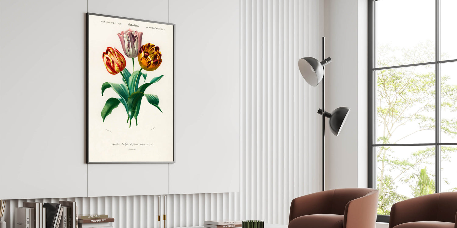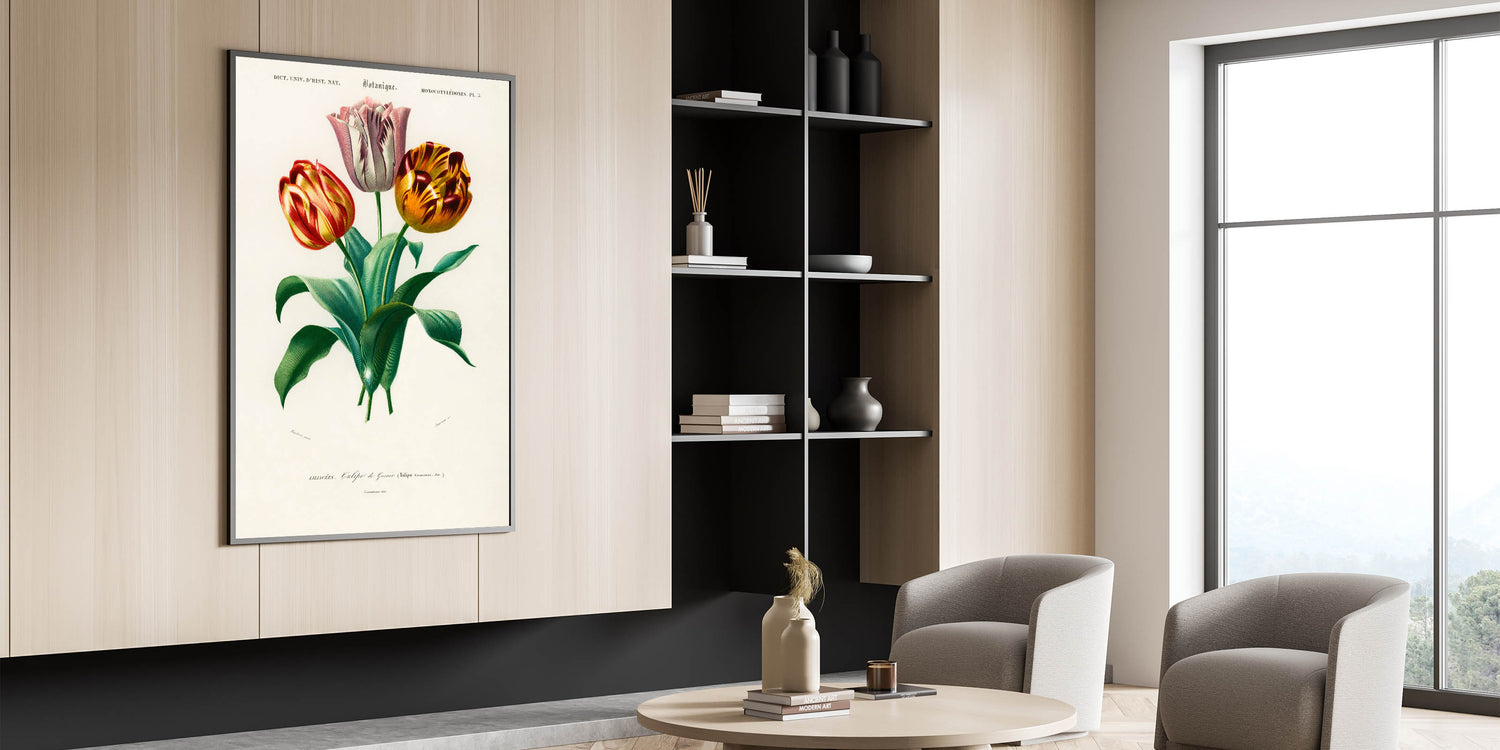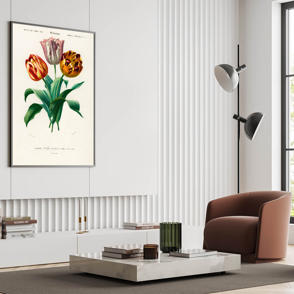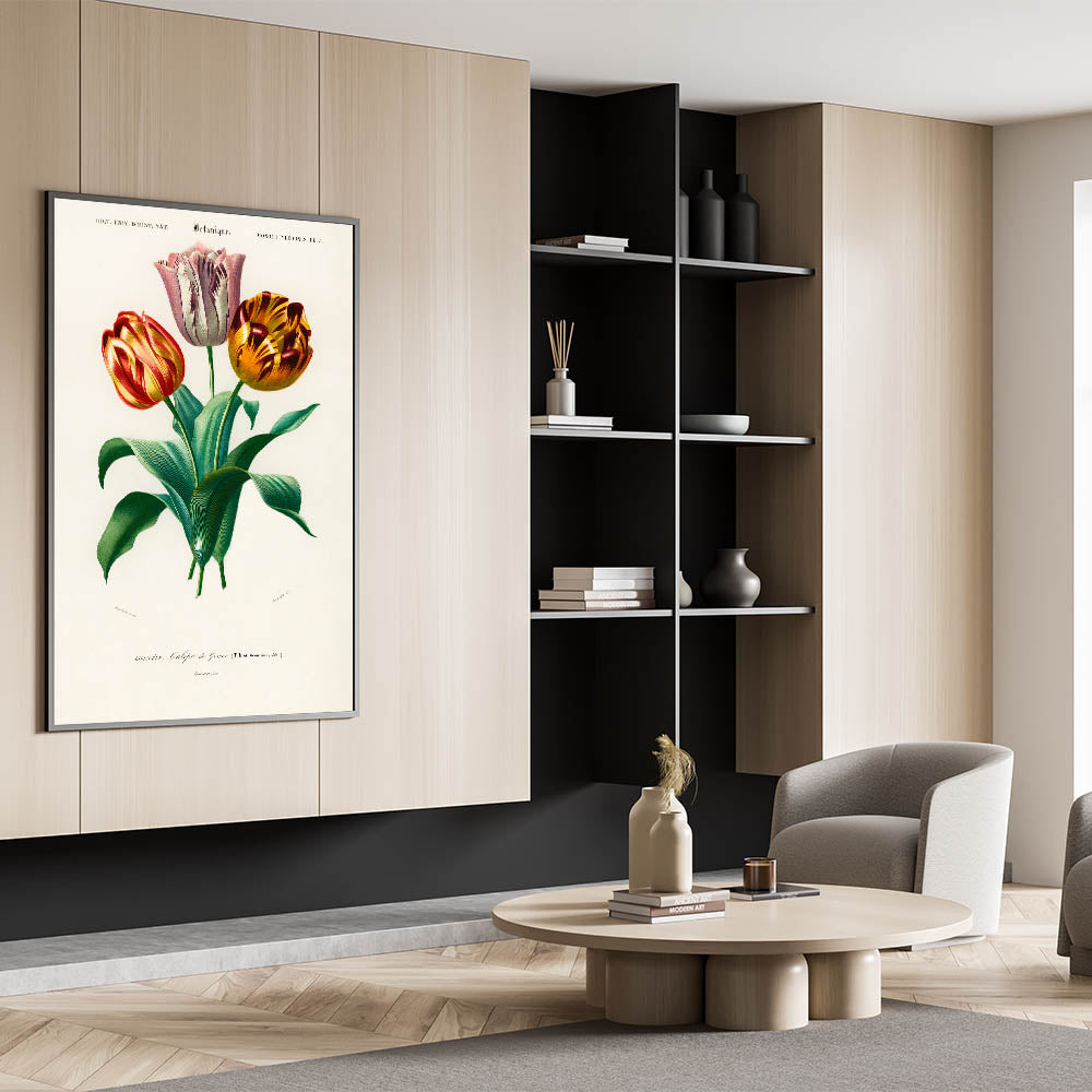 Elevate your decor with the timeless elegance of Romanticism-style wall art. Featuring Didier's Tulip (Tulipa gesneriana), beautifully illustrated by Charles Dessalines D’Orbigny, this botanical masterpiece captures the vivid colors and intricate details of three tulips in full bloom. The artwork’s lush greens and vibrant floral tones celebrate the beauty of nature, making it a perfect statement piece for any home or office.