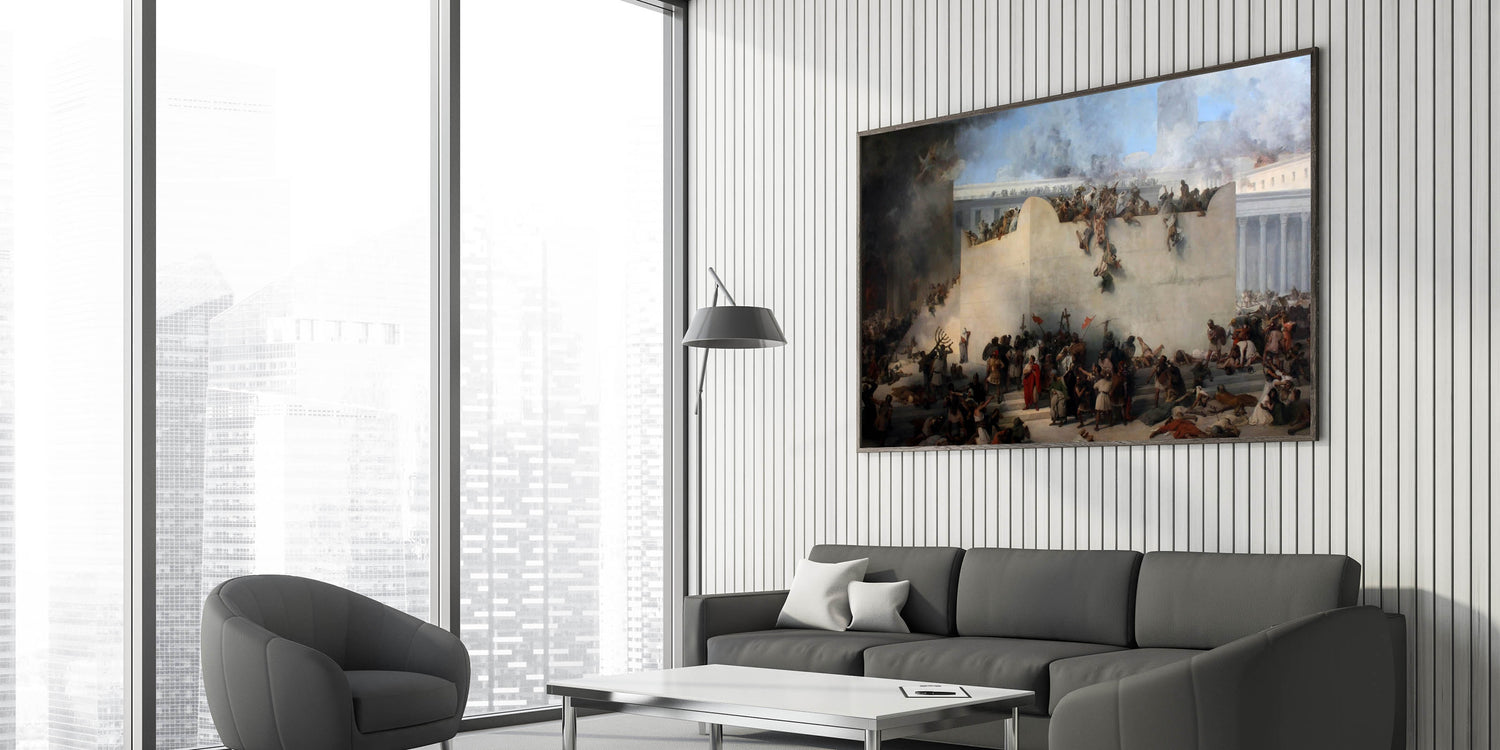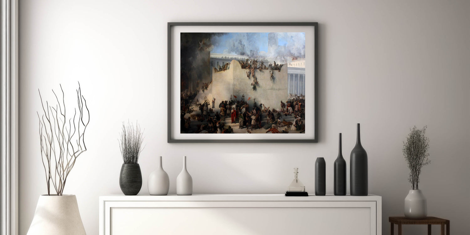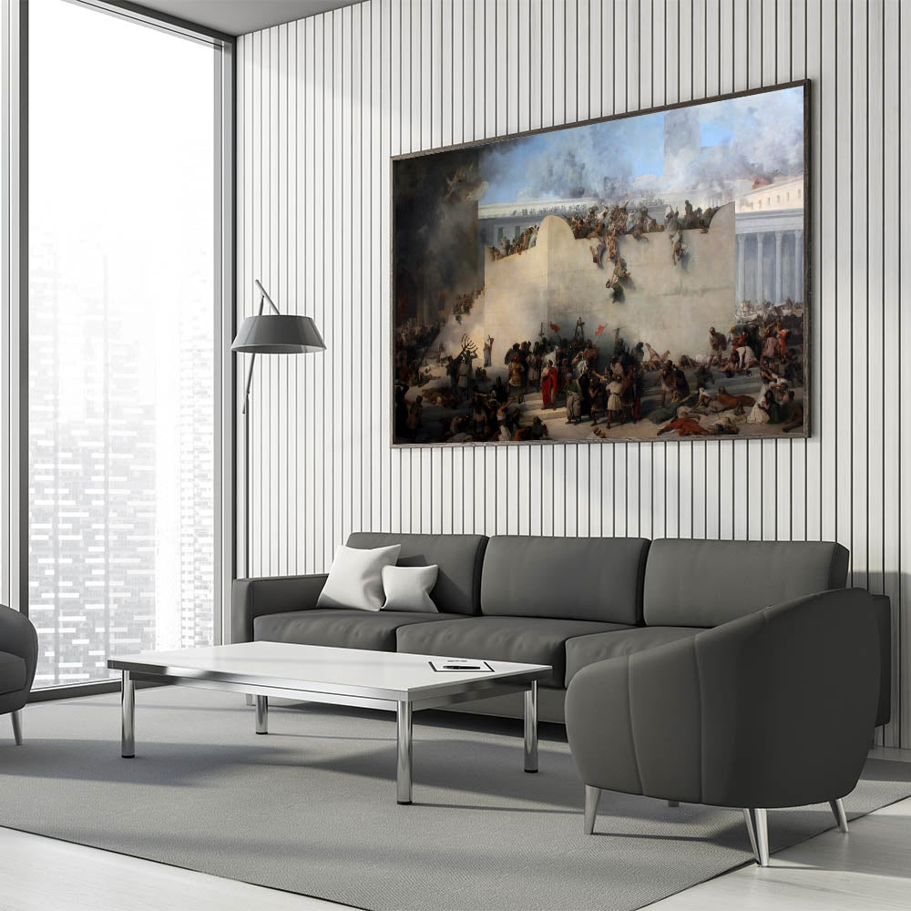Experience the powerful emotions and rich historical narrative of Romanticism style wall art with this iconic masterpiece by Francesco Hayez. This dramatic painting vividly depicts a moment of chaos and despair, showcasing Hayez’s masterful use of light, shadow, and intricate detailing. The dynamic composition and expressive figures capture the themes of heroism, struggle, and tragedy, making this a timeless example of classic Romantic paintings. Ideal for historic and cultural wall decor, this artwork reflects the artistic depth of the Romantic era and its profound connection to human experience.