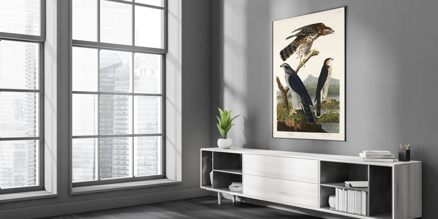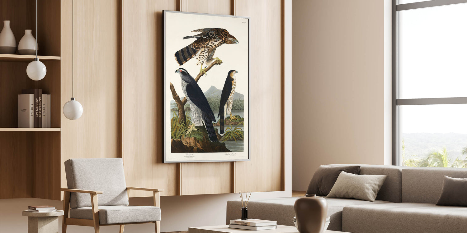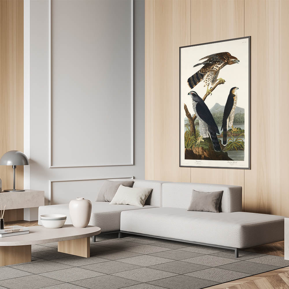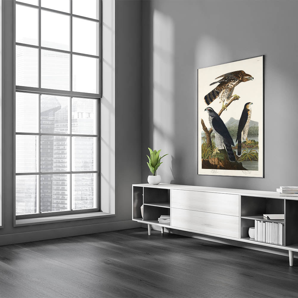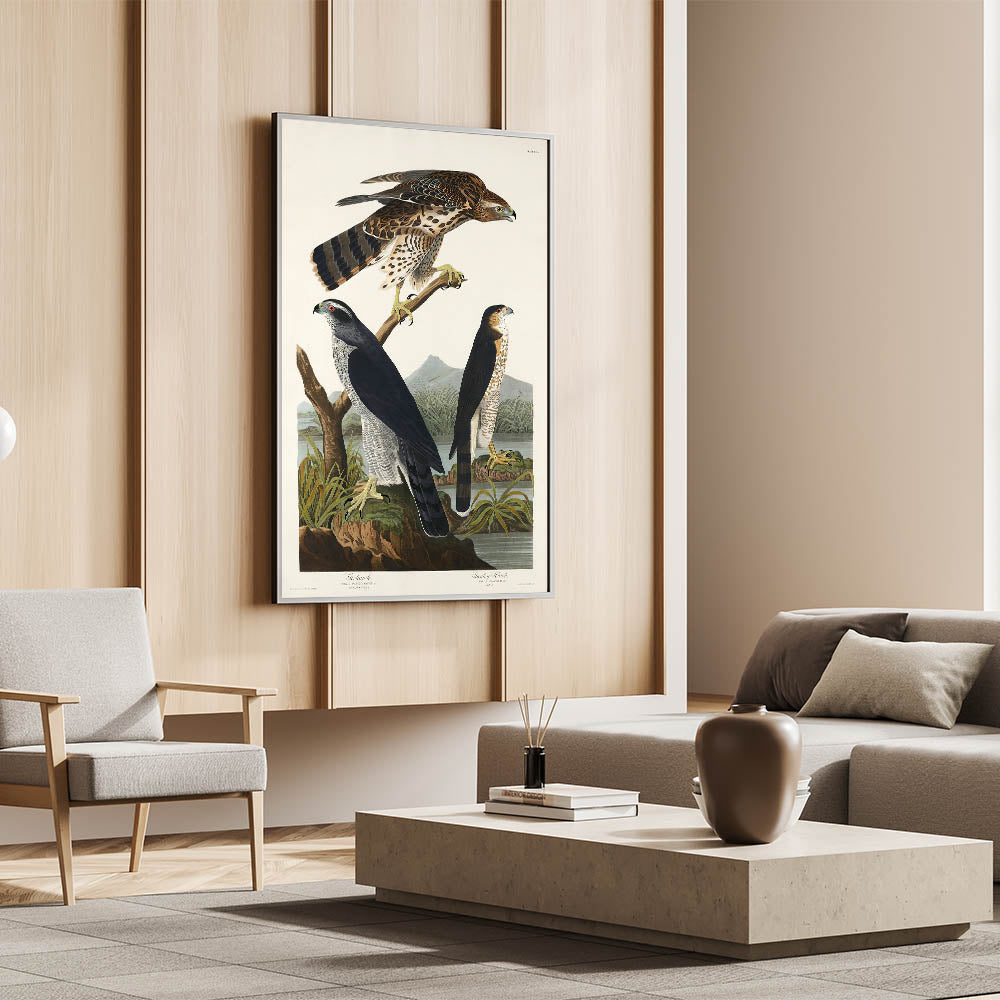 Bring the splendor of nature and the elegance of the Romantic era into your home with this stunning piece, "Goshawk and Stanley Hawk," from John James Audubon's Birds of America (1827). This artwork embodies the Romanticism style, showcasing emotional landscapes and vivid wildlife portraits that transcend time.