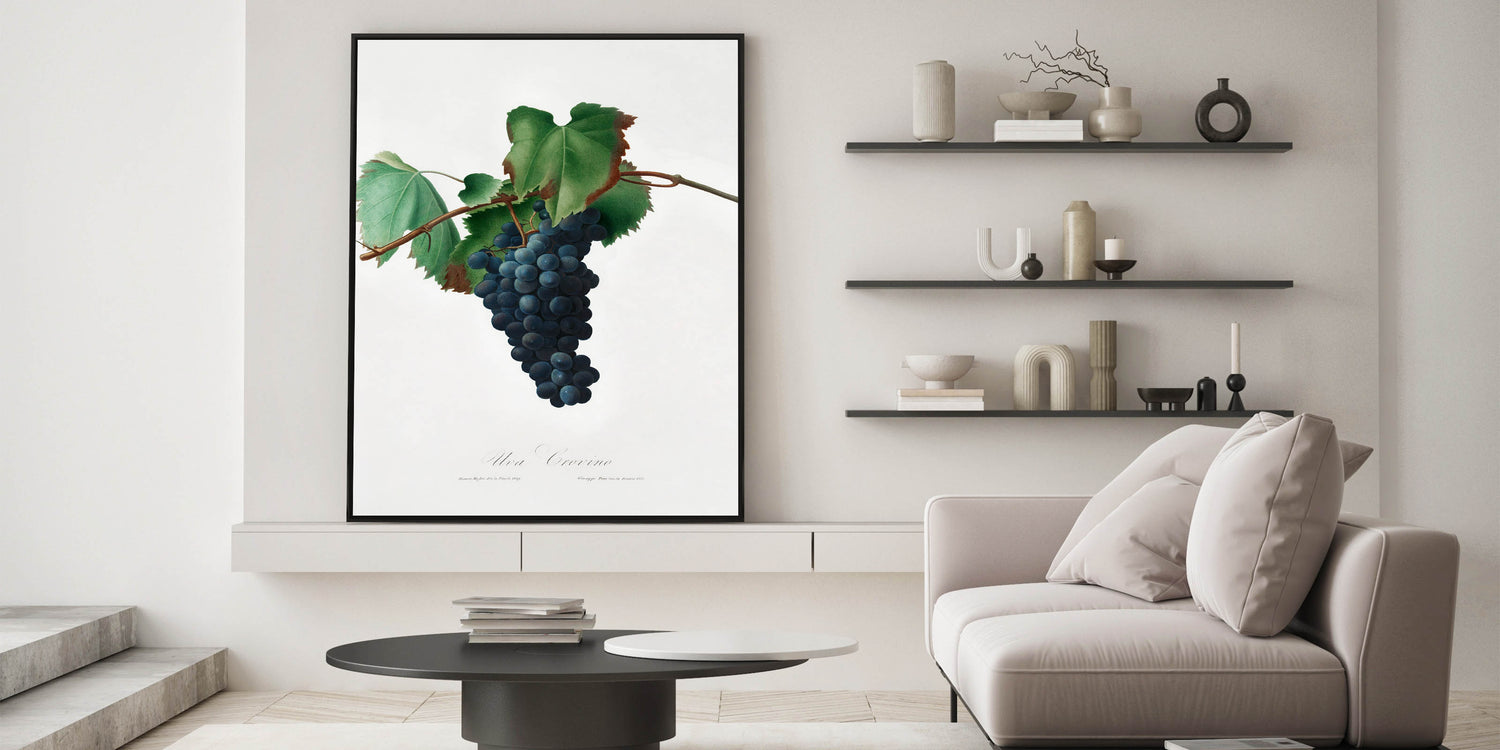 - Intricate Botanical Details: Showcases the vibrant hues of the grape cluster and leaves.