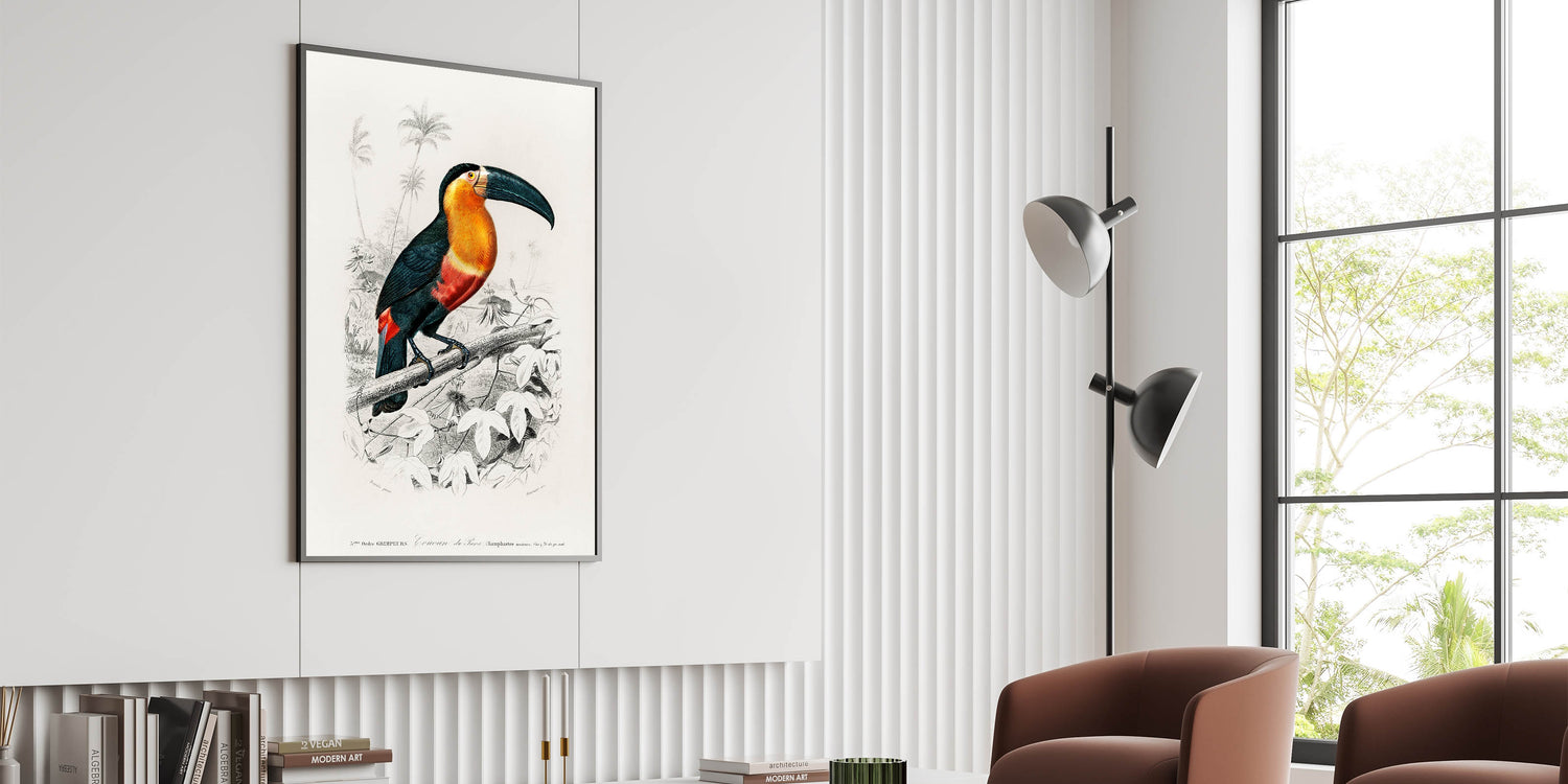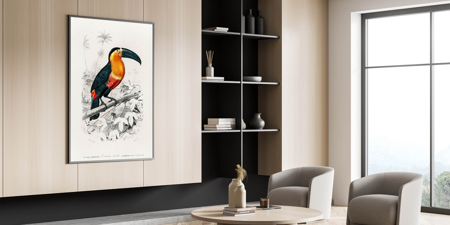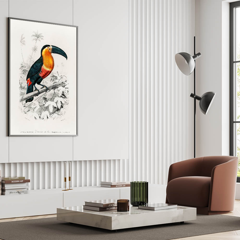 - Exceptional craftsmanship: A historical toucan illustration rendered in intricate detail.