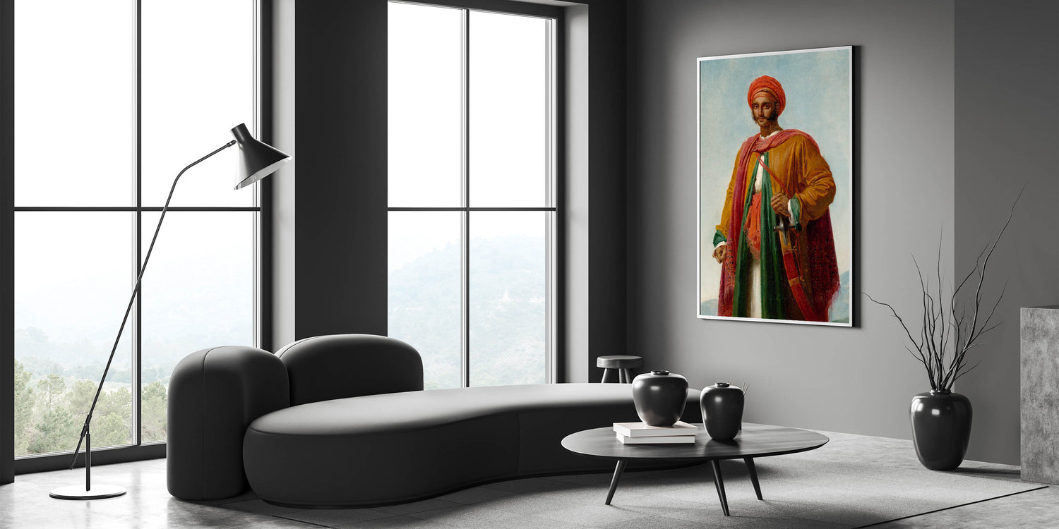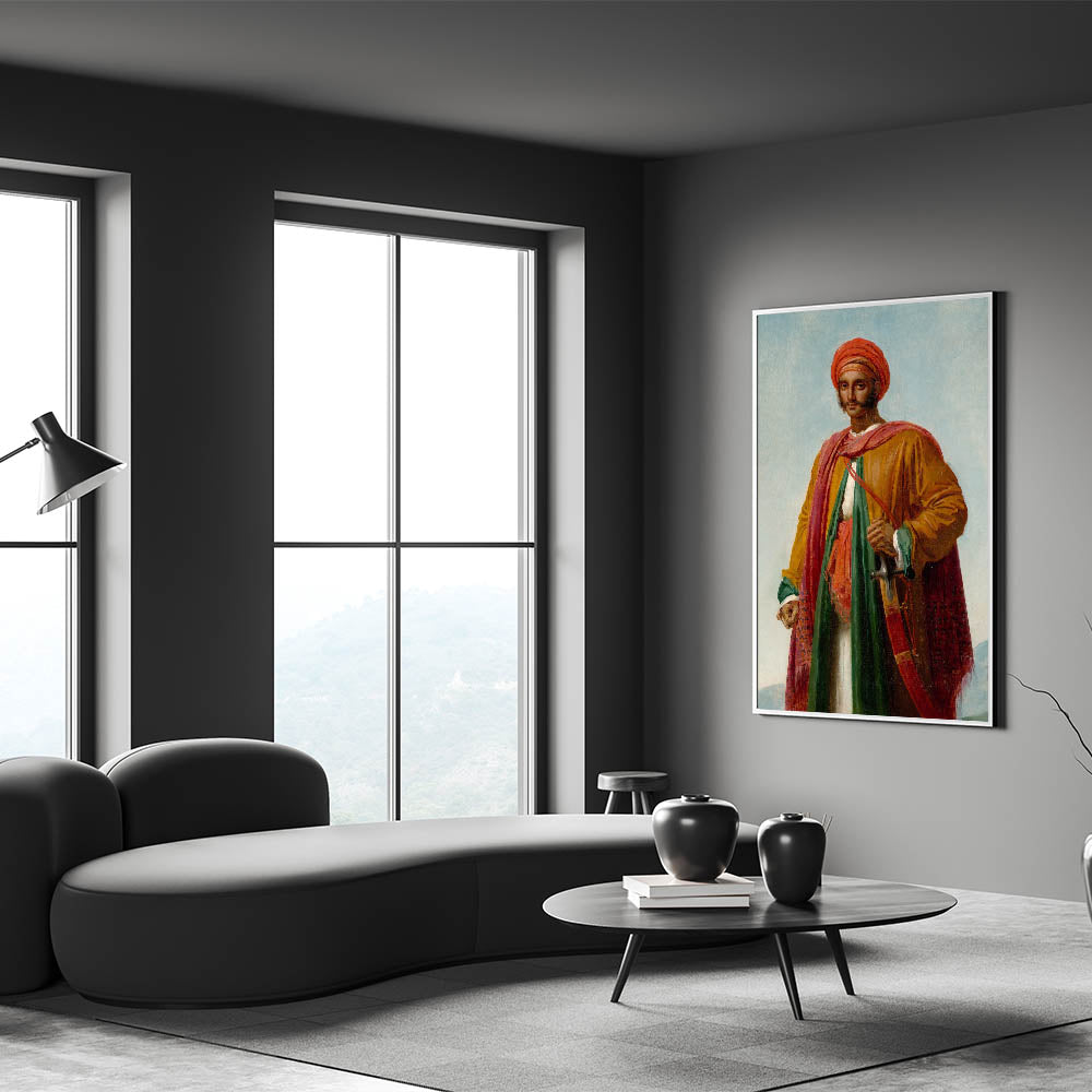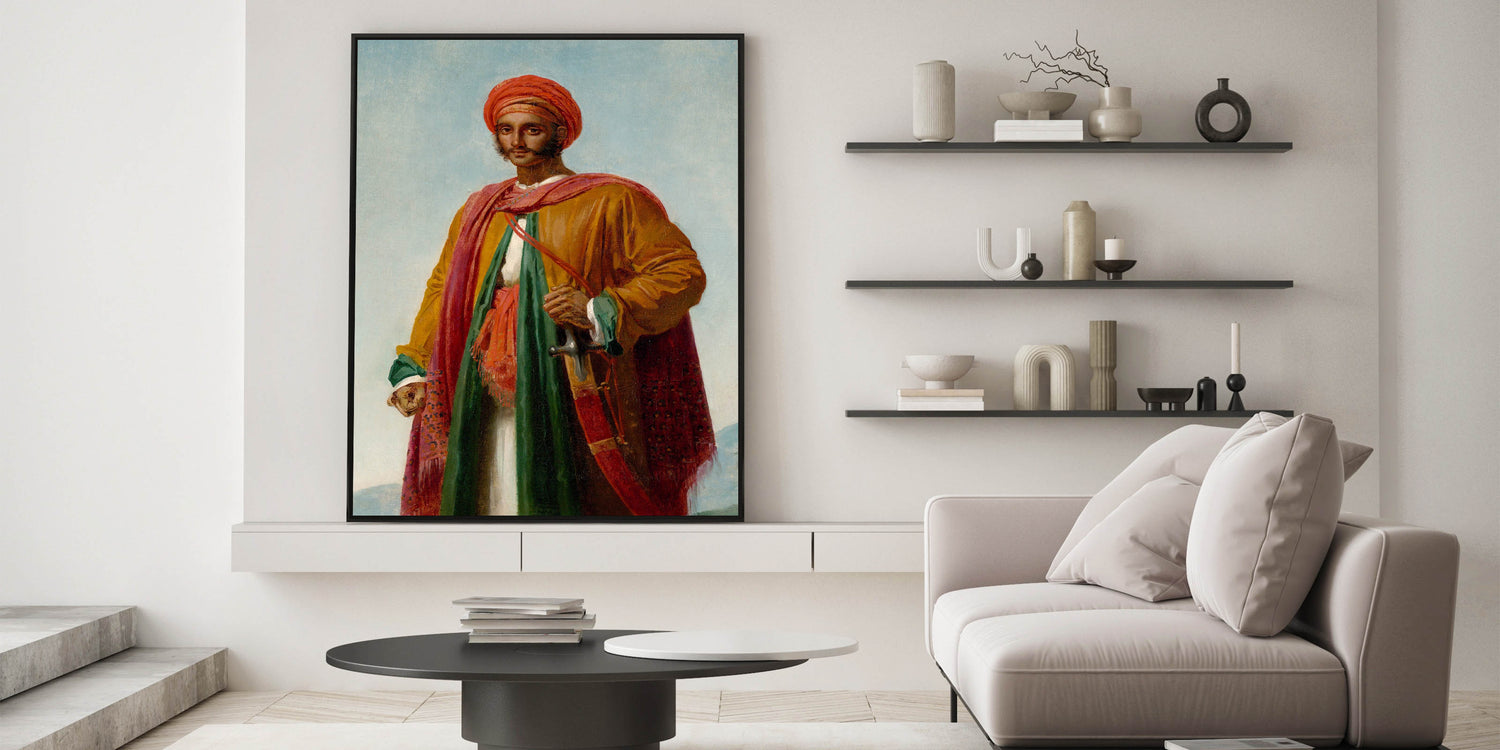 Celebrate the grace and cultural richness of Romanticism with Study for Portrait of an Indian by Anne-Louis Girodet-Trioson. This stunning artwork presents a dignified figure dressed in vibrant traditional attire, holding a finely crafted sword. The detailed brushwork and rich color palette reflect the Romanticism style wall art's fascination with exoticism and cultural exploration.