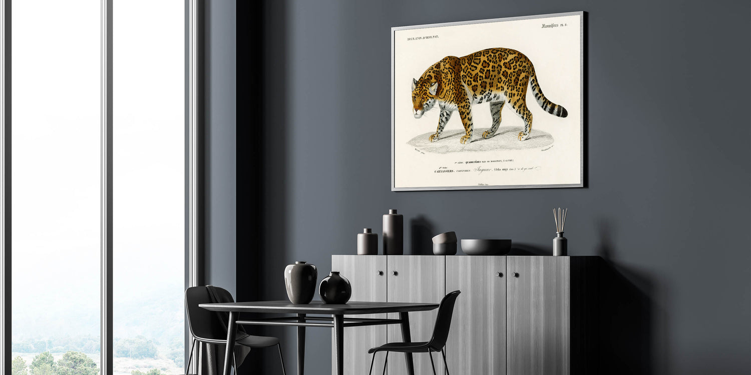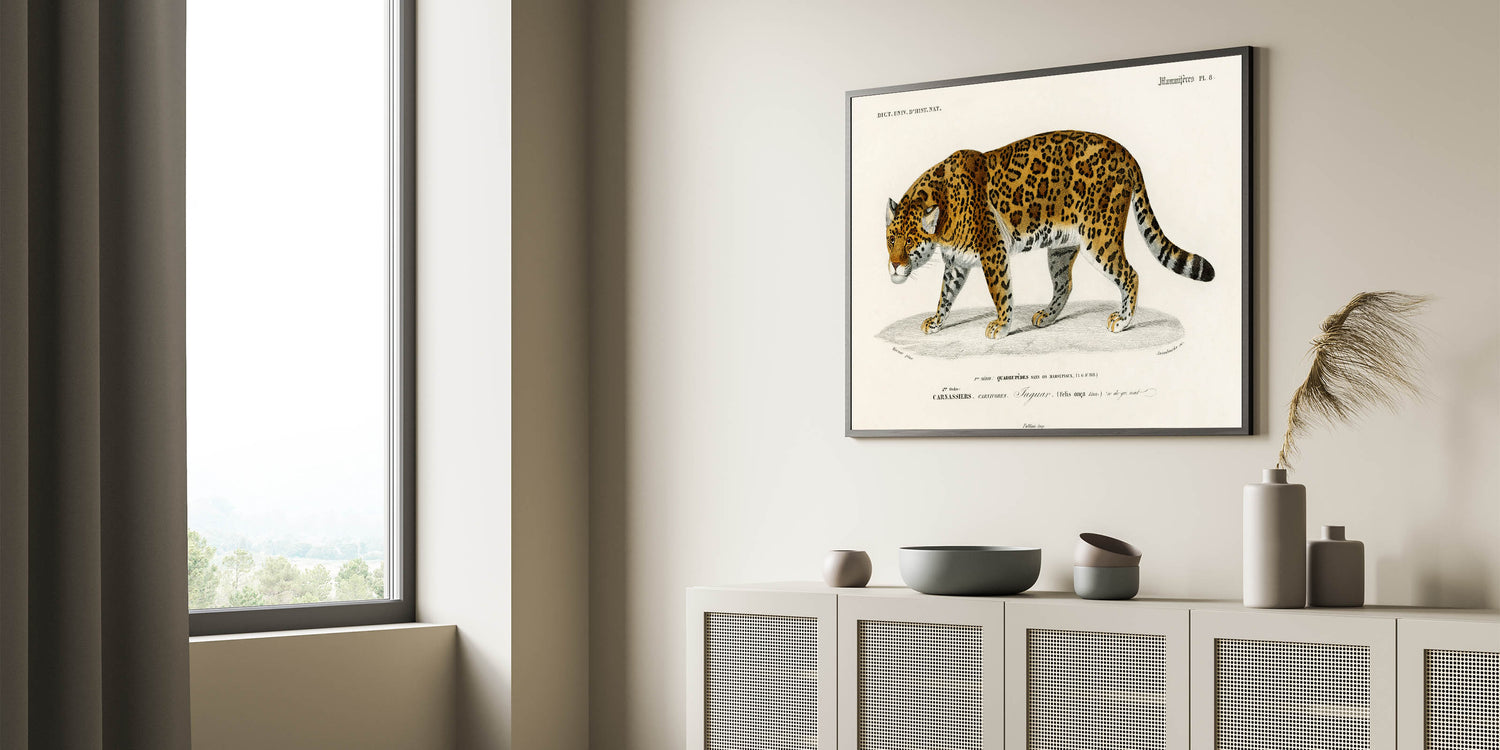 This classic art of the Romantic era is perfect for animal lovers, art enthusiasts, or collectors of wildlife illustrations. Bring the power and grace of the jaguar into your home with this elegant Romantic art for home decor.
