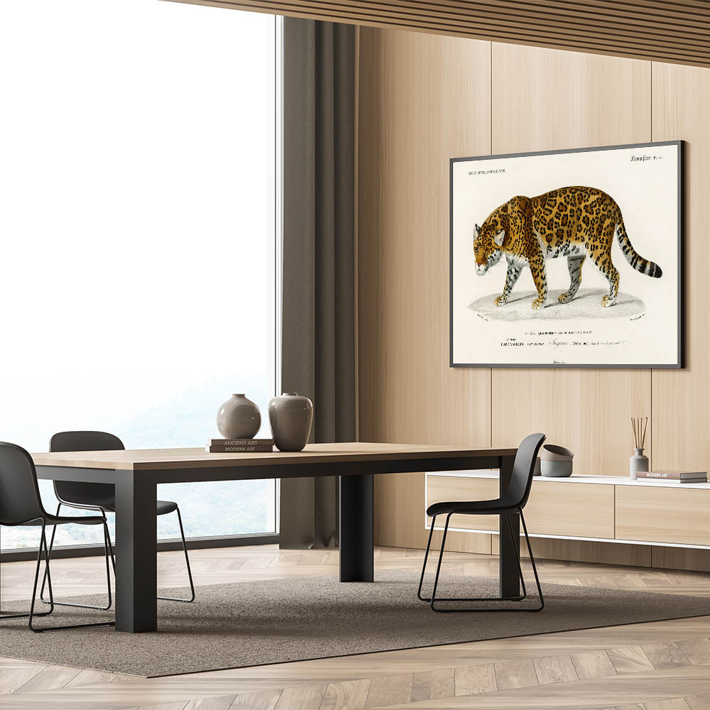 Embrace the beauty of Romanticism style wall art with this detailed illustration of the jaguar (Panthera Onca), crafted by Charles Dessalines D’Orbigny. This exquisite piece is part of 19th-century scientific artistry, showcasing the jaguar in all its majestic glory. The intricate detailing, from the striking spots on its coat to the lifelike gaze, reflects the Romantic era’s admiration for the natural world and its creatures. This timeless illustration perfectly balances scientific precision and artistic beauty, making it a standout addition to any space.