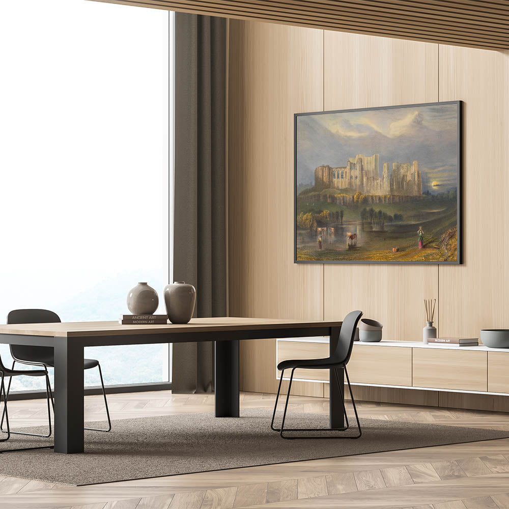 Step back in time with this breathtaking depiction of Kenilworth Castle, a perfect example of Romanticism-style wall art. This artwork captures the serene beauty of the castle ruins, surrounded by tranquil waters and pastoral scenes. The soft light and atmospheric mood evoke the emotional depth and historic significance of the Romantic era.