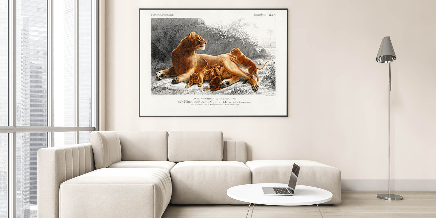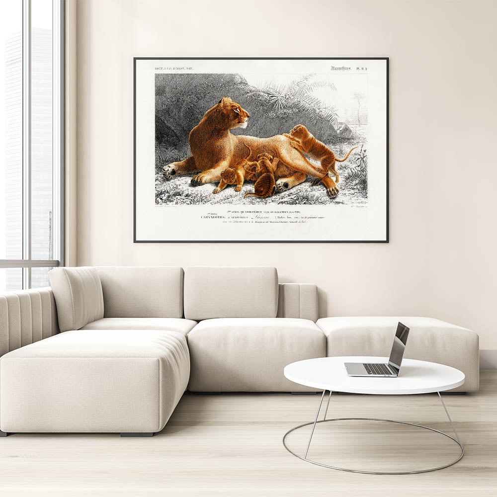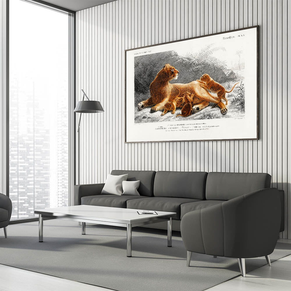 Romanticism Art: Lioness with Cubs by D’Orbigny - Wildlife Canvas