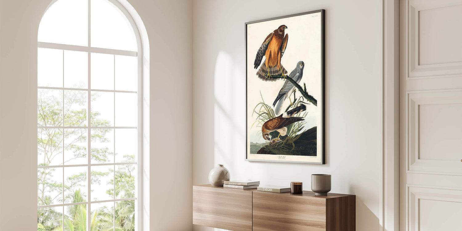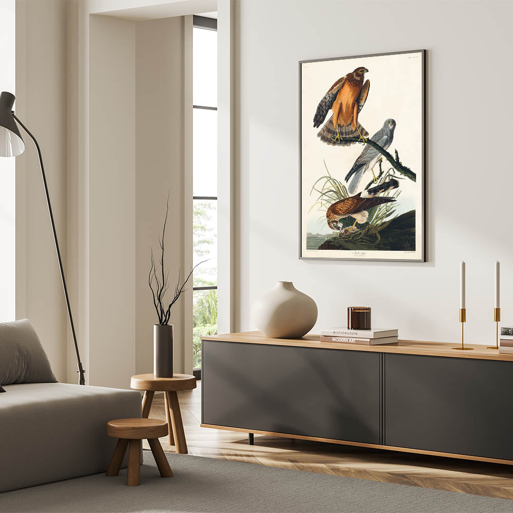 Bring the essence of Romanticism to your home with this captivating art piece, Marsh Hawk from Birds of America (1827) by John James Audubon. This masterpiece showcases the delicate balance between nature's majesty and humanity's admiration for it. The intricate details of the hawks in their natural habitat evoke emotional landscapes and portraits, hallmarks of Romanticism style wall art.