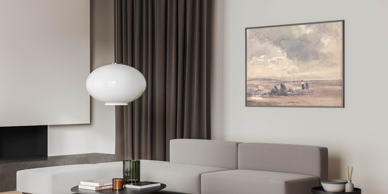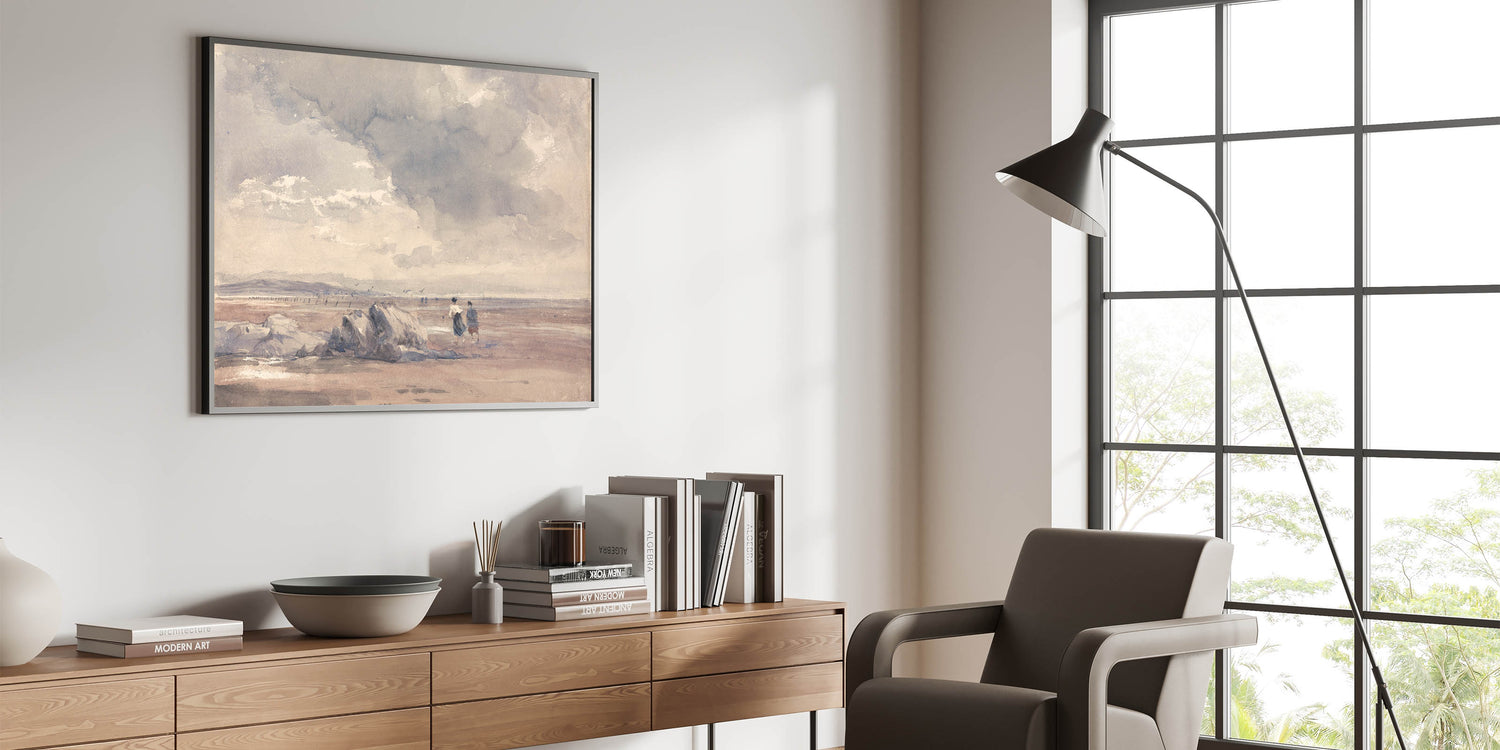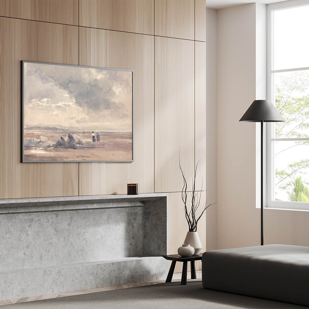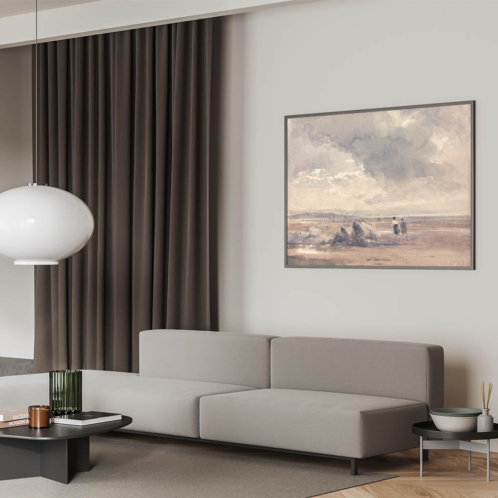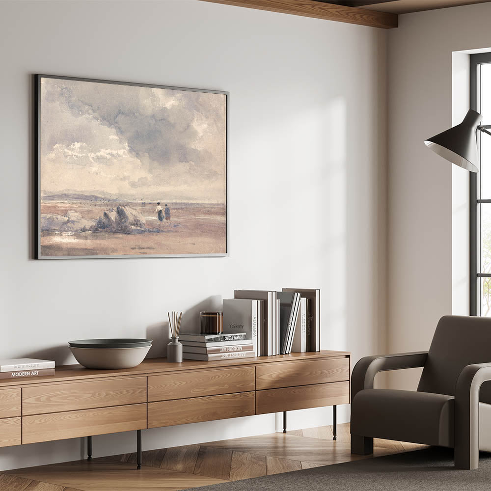 Capture the serene beauty of Romanticism with On Lancaster Sands, Low Tide by David Cox. This breathtaking artwork perfectly illustrates the Romantic era's emphasis on nature's quiet majesty and emotional resonance. Featuring soft, muted tones, the painting invites viewers into a tranquil landscape of vast sands and distant horizons.
