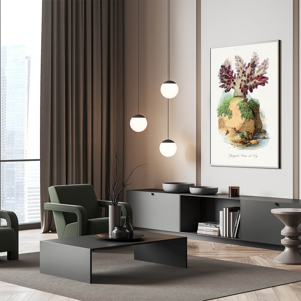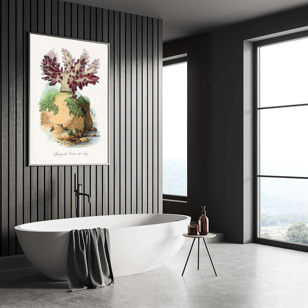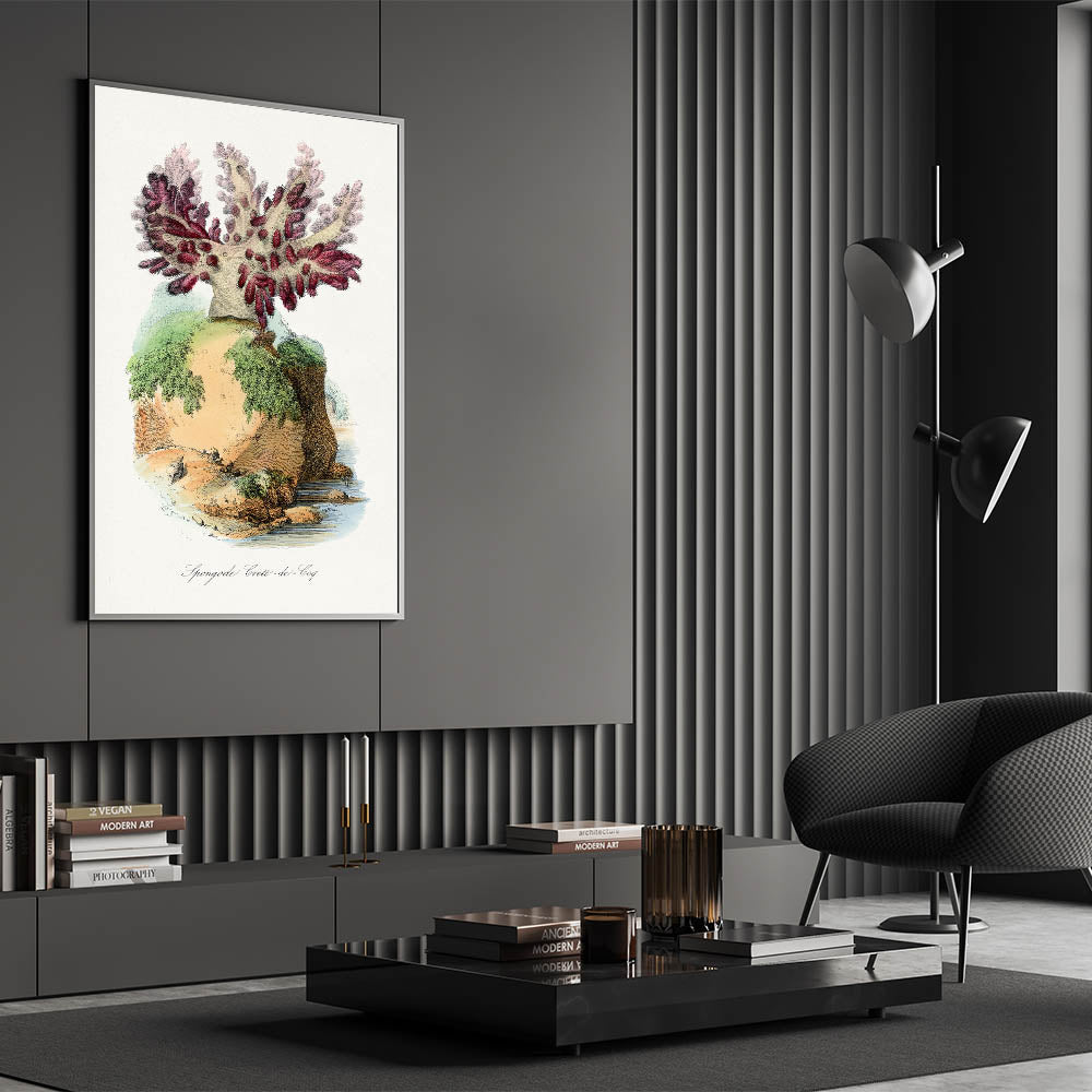 Add a touch of nature’s wonder and Romanticism elegance to your walls with this beautifully detailed Spongode Coral Study from Paul Gervais' 1842 edition of Le Jardin Des Plantes. This stunning botanical artwork showcases the intricate forms and vibrant hues of coral against a serene coastal landscape. A true testament to the Romantic era’s fascination with the natural world, it merges science and art into a timeless masterpiece.