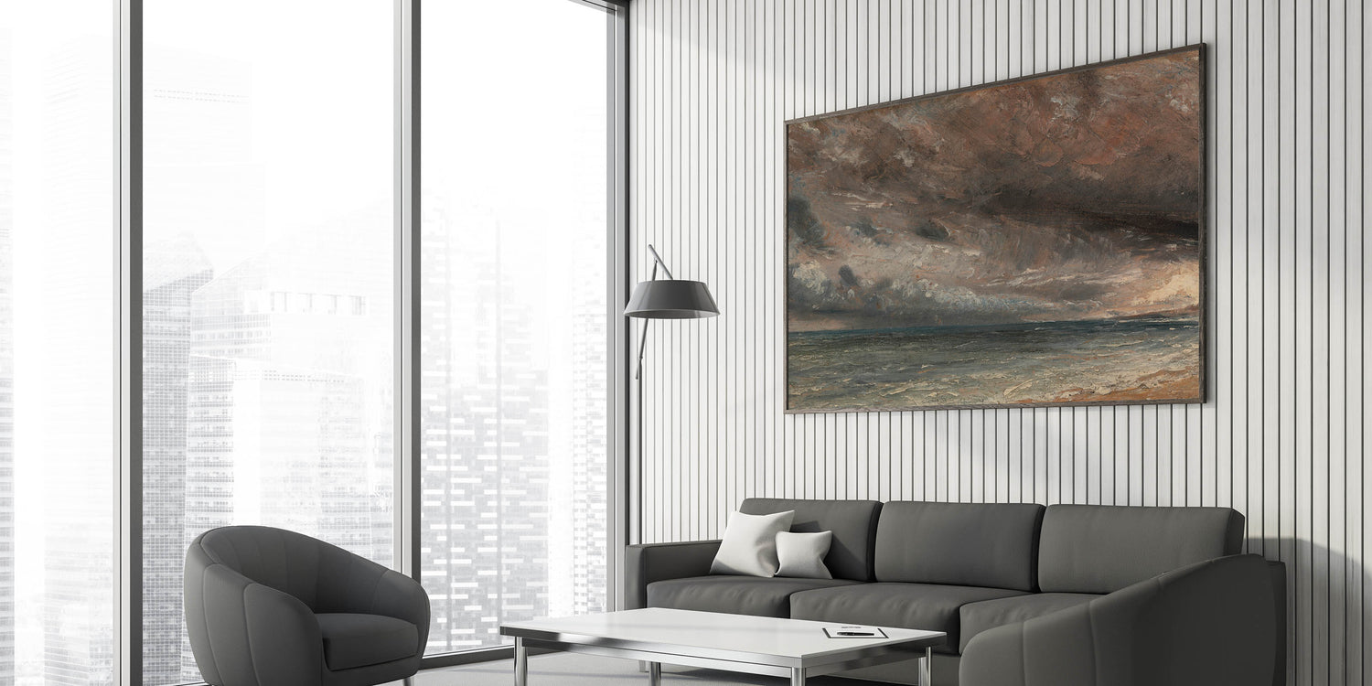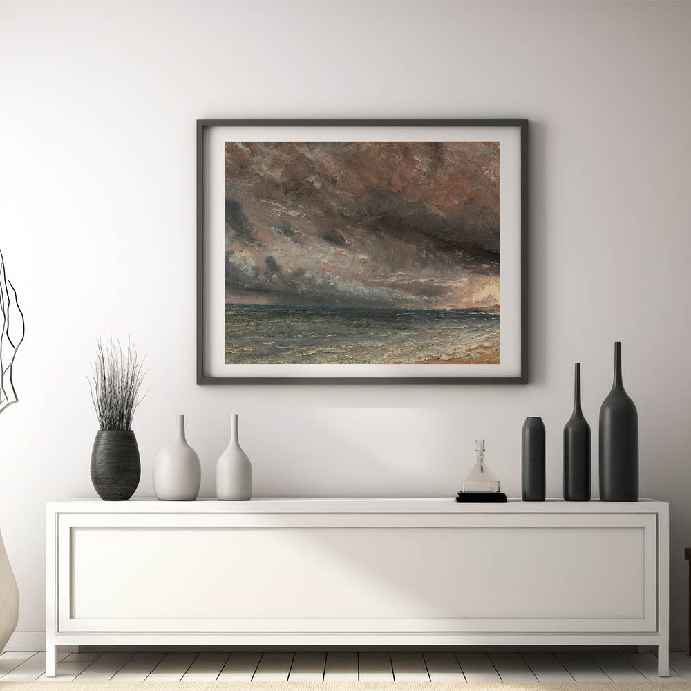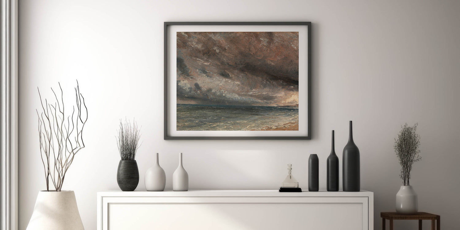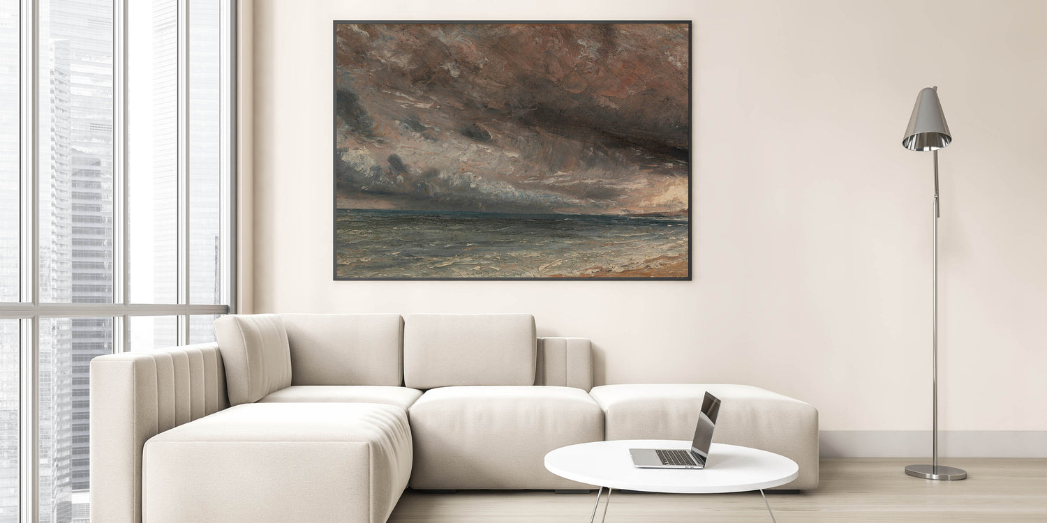 Capture the raw beauty of nature with this evocative Romanticism style wall art, "Stormy Sea, Brighton" by John Constable. This masterpiece immerses viewers in the drama of a turbulent sea, with crashing waves and a stormy sky rendered in Constable’s signature expressive brushstrokes. The interplay of dark clouds and subtle light conveys a sense of power and emotion that defines classic Romantic paintings, making it a timeless choice for historic and cultural wall decor.