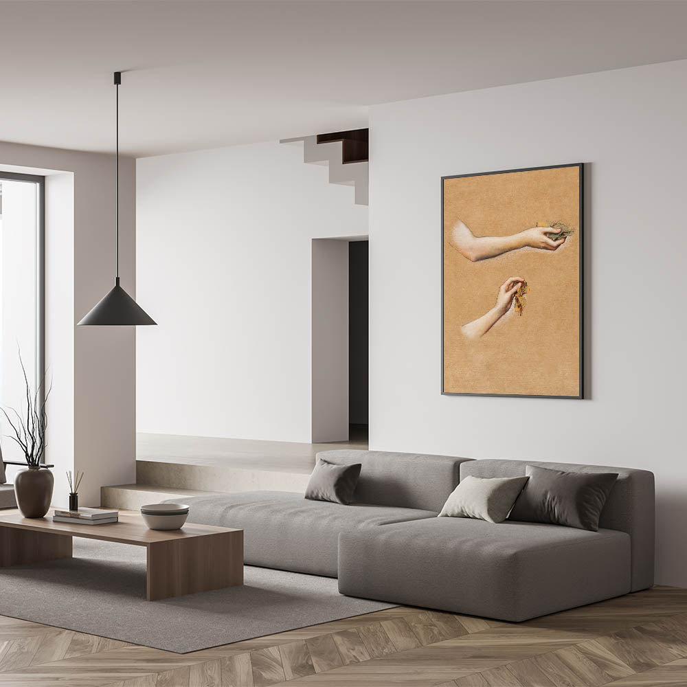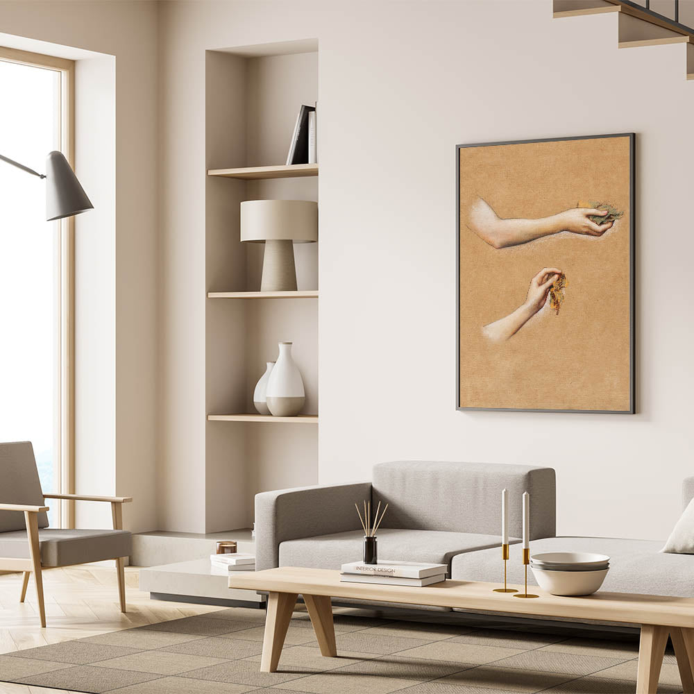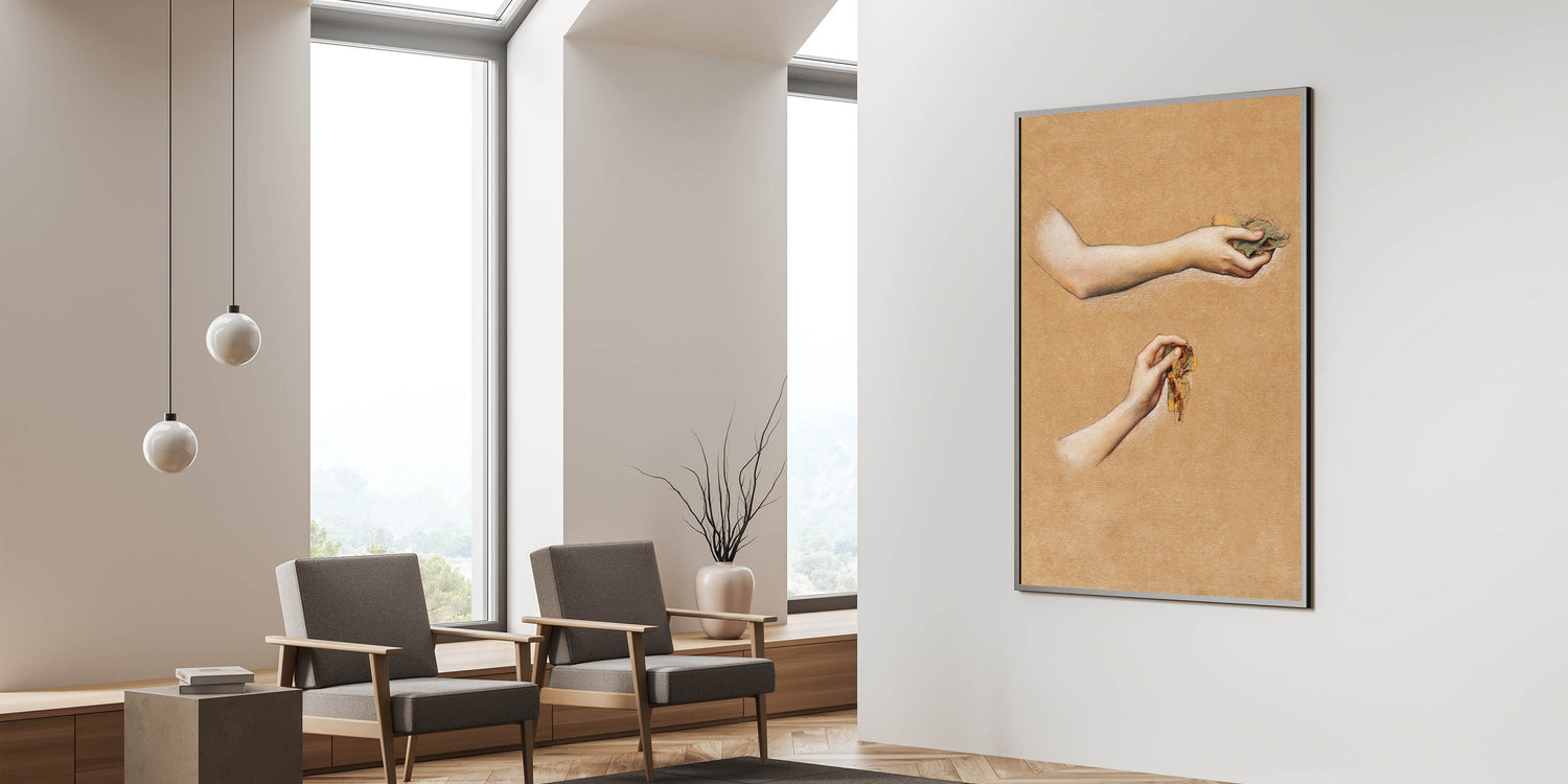 - Material Options: Available in Stretched Canvas, Framed Canvas, Acrylic Glass, Rolled Canvas, and Framed Prints.