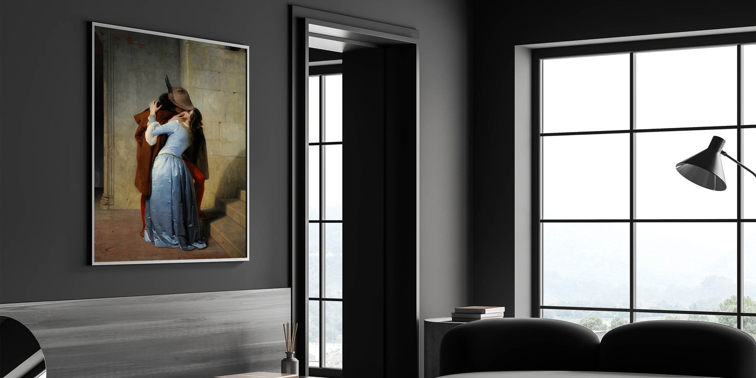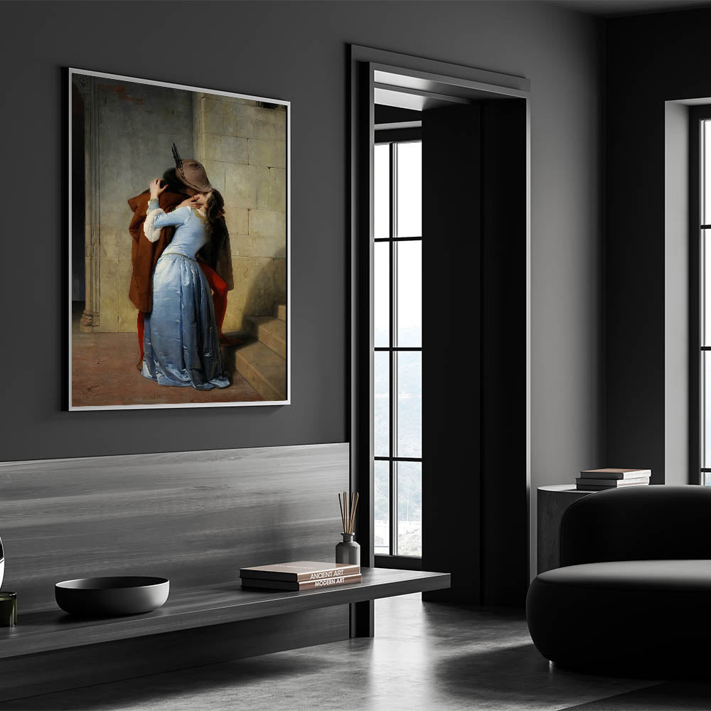 Celebrate the beauty and passion of the Romantic era with this exquisite artwork, "The Kiss," inspired by Romanticism's timeless emotional depth. This iconic painting captures an intimate moment, evoking a sense of love, longing, and dramatic intensity, all hallmarks of Romanticism.