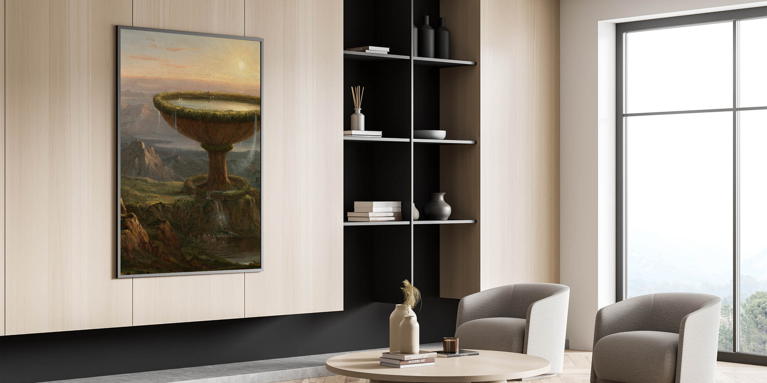 Immerse yourself in the grandeur of Romanticism with The Titan's Goblet by Thomas Cole, a stunning depiction of emotional landscapes and artistic imagination. This masterpiece captures the essence of the Romantic era, blending natural beauty with mythological elements to create a captivating and timeless work of art.