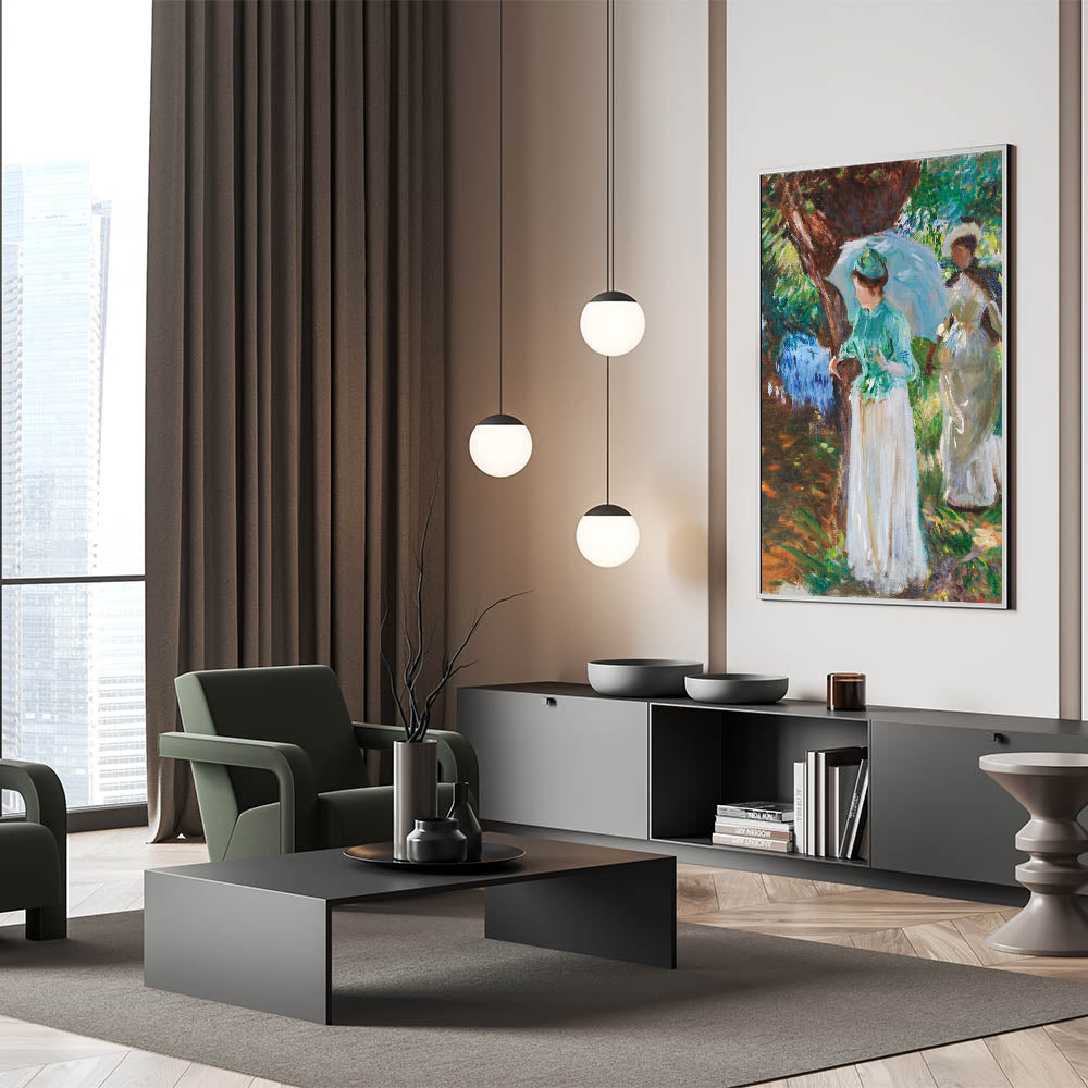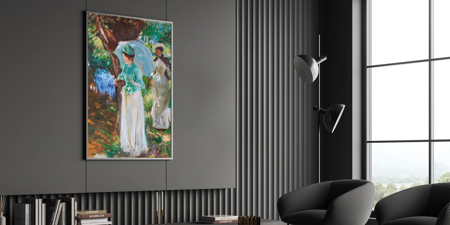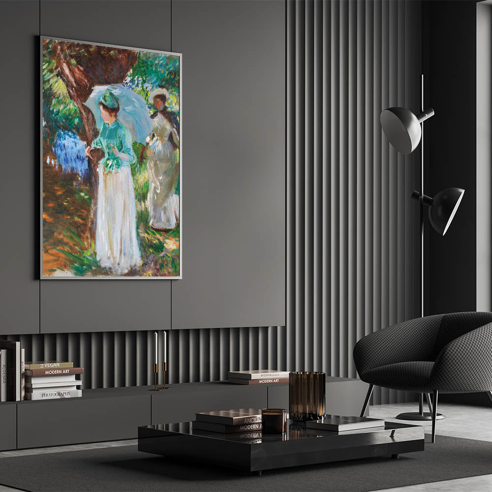 Infuse your space with timeless charm through Two Girls with Parasols (1888) by John Singer Sargent. This exquisite Romantic-era painting captures the leisurely elegance of two women strolling through a lush garden, shaded by delicate parasols. With vivid brushstrokes and luminous colors, Sargent perfectly conveys the beauty of sunlight filtering through foliage and the serene intimacy of this idyllic moment.