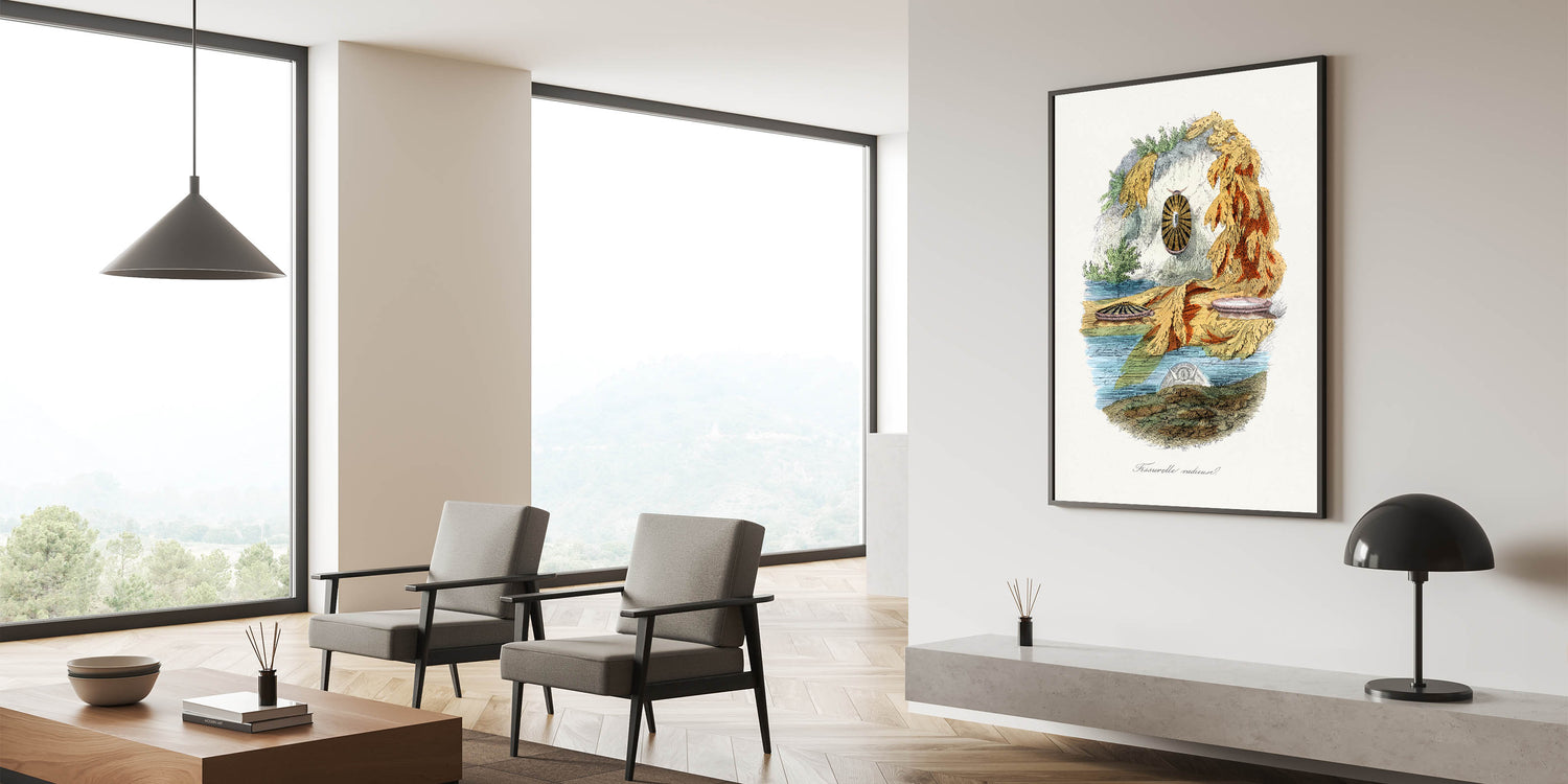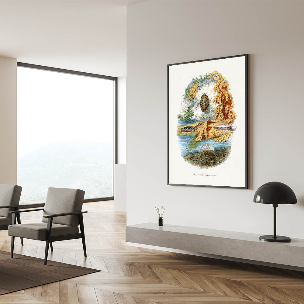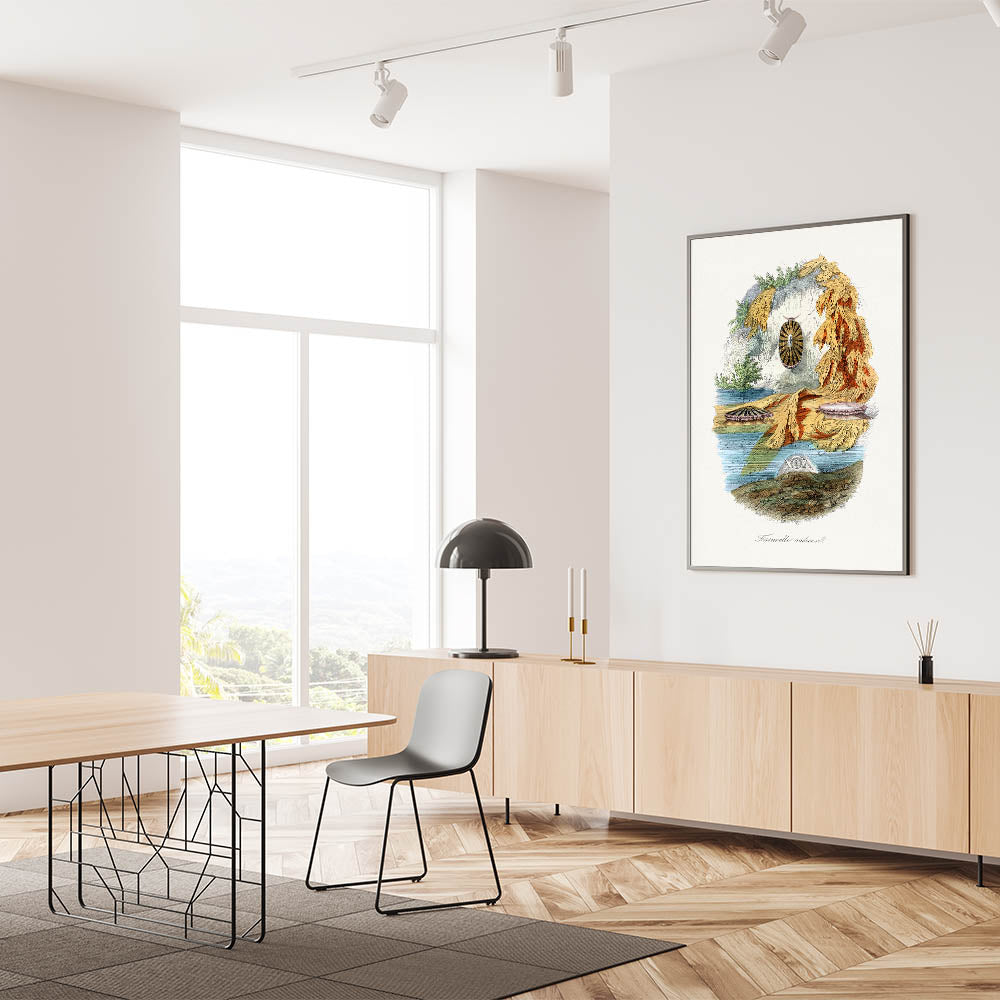 Discover the timeless beauty of Romanticism art with this exquisite Volcano Limpet Snail wall art, inspired by the 1842 edition of "Le Jardin Des Plantes" by Paul Gervais. This piece encapsulates the Romantic era’s fascination with the natural world, featuring an intricate blend of marine life and botanical elegance.