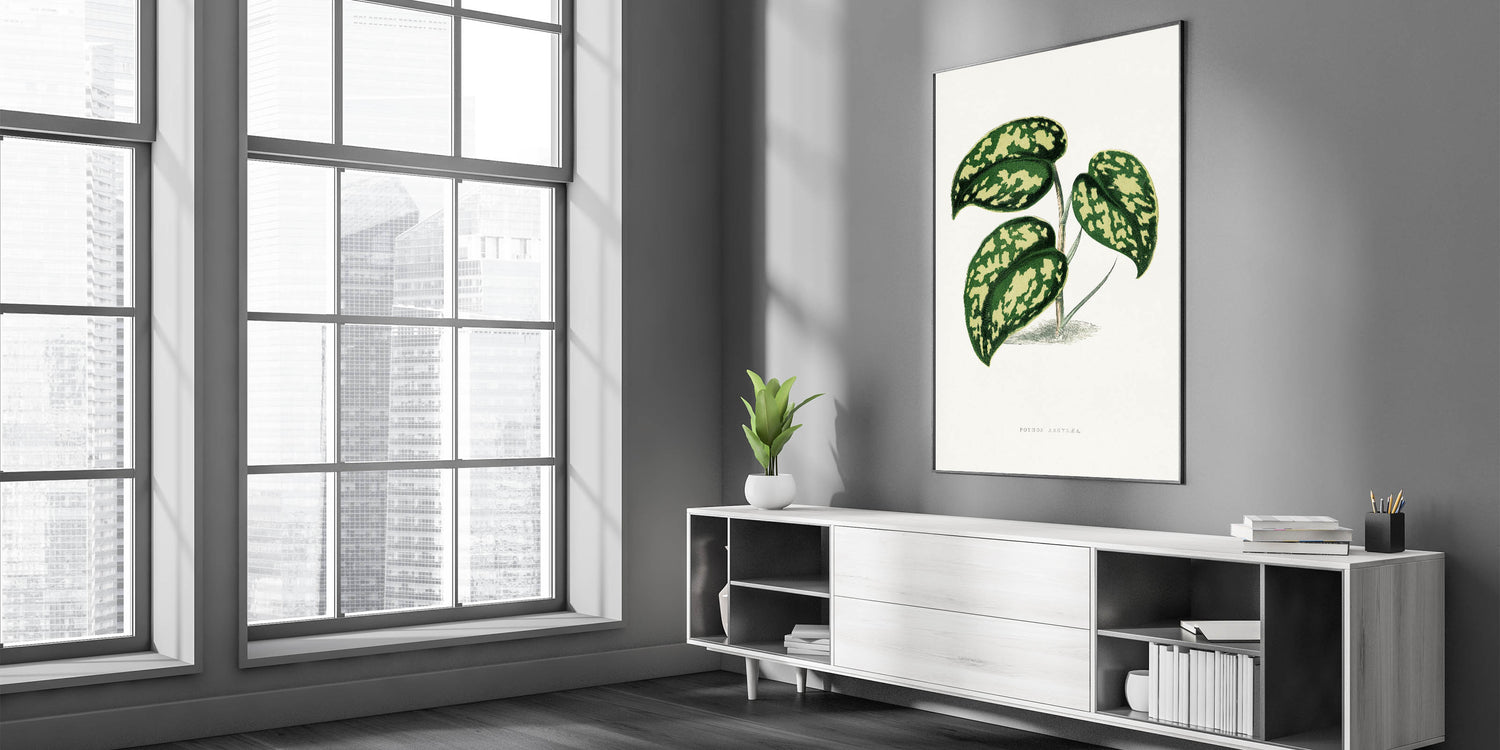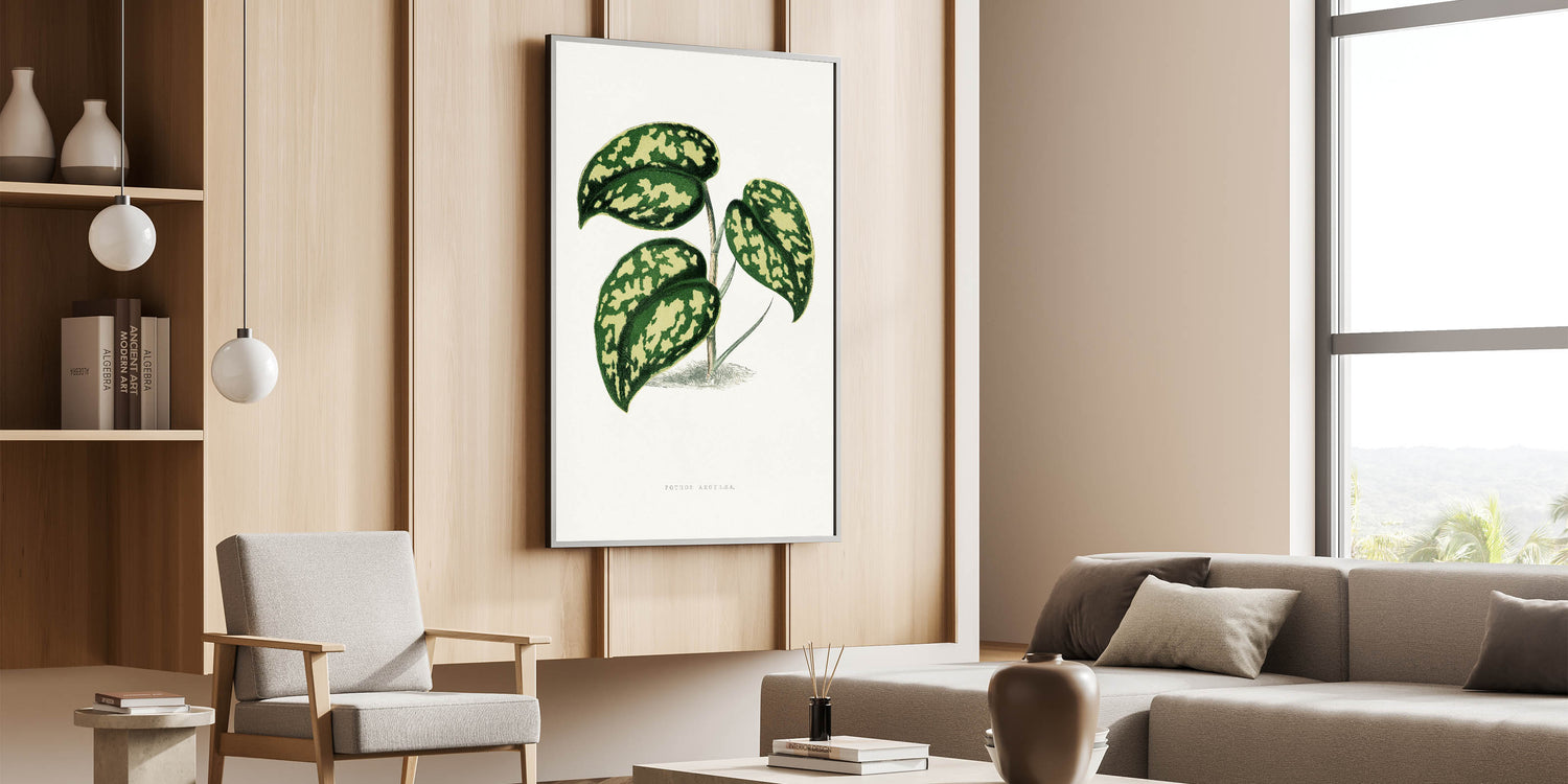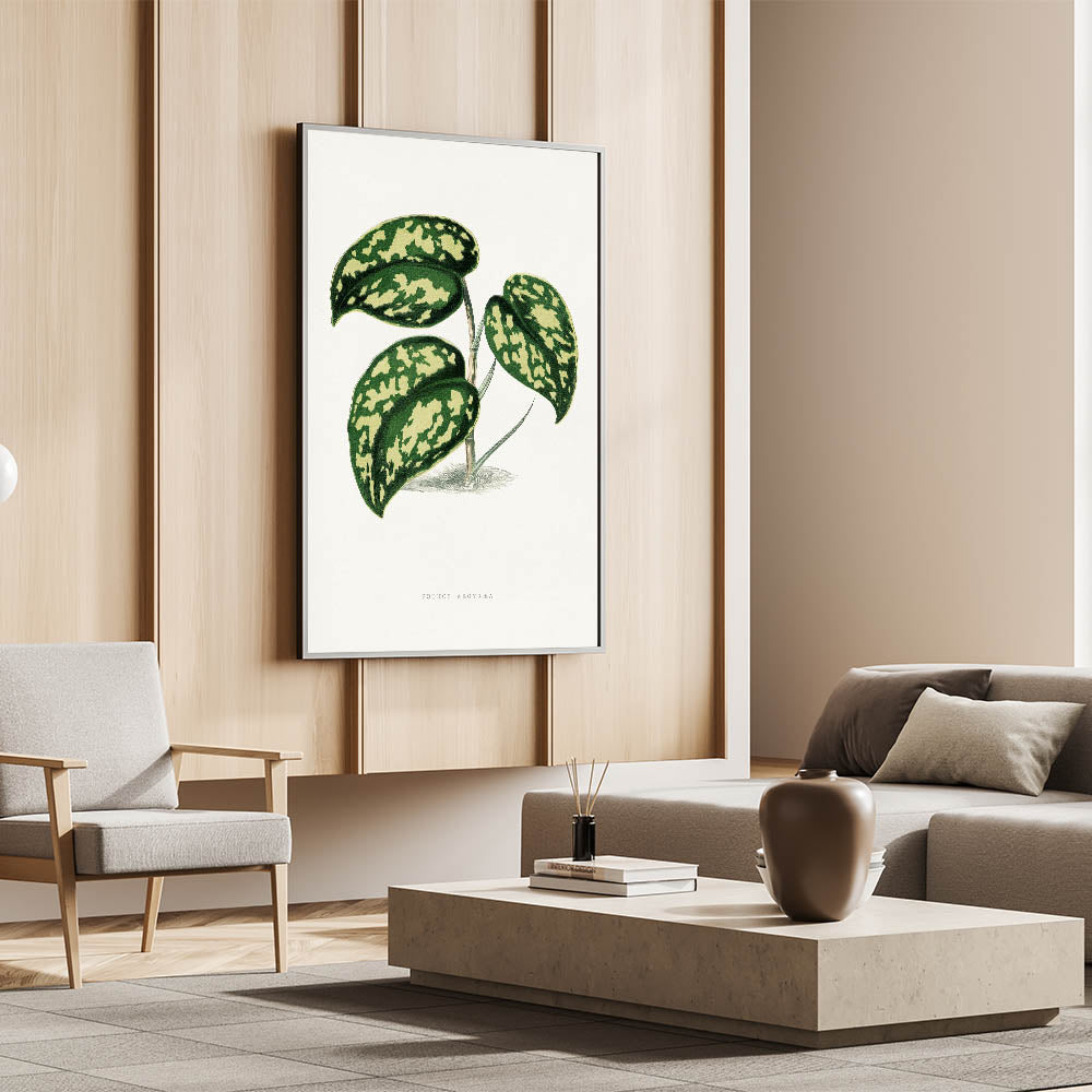 Romanticism Botanical Art: Pothos Argyraea Leaf Print on Canvas