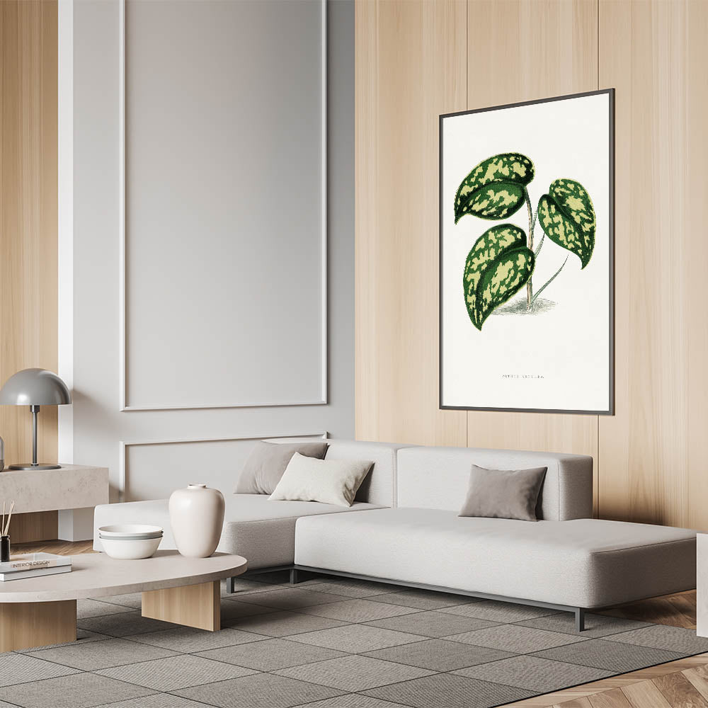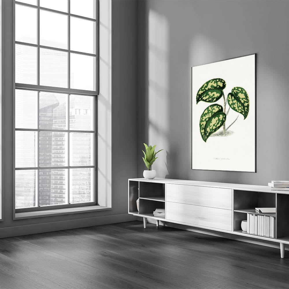 Infuse your space with the timeless elegance of Romantic botanical artistry through this captivating Pothos Argyraea leaf illustration from the 1865 edition of Les Plantes à Feuillage Coloré by Alexander Francis Lydon and Benjamin Fawsett. This exquisite print highlights the intricate beauty of variegated leaves, combining scientific precision with the artistic charm of the Romantic era.