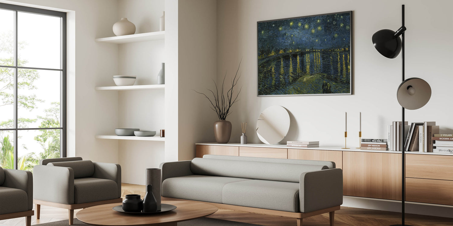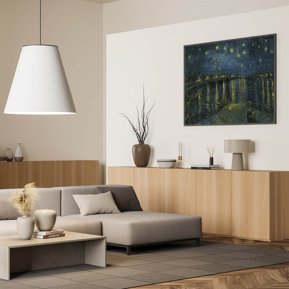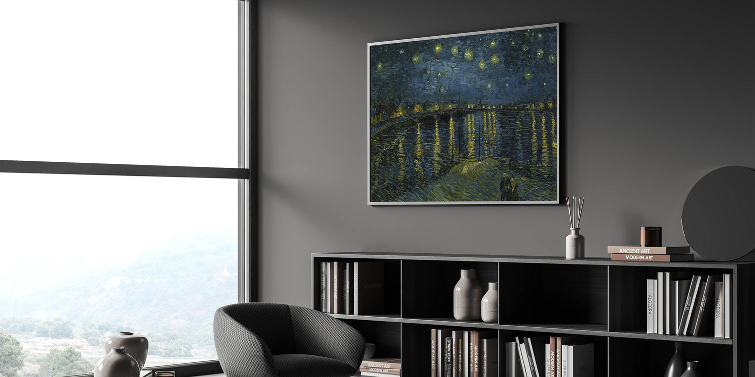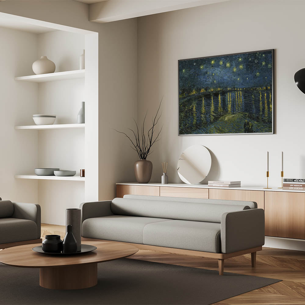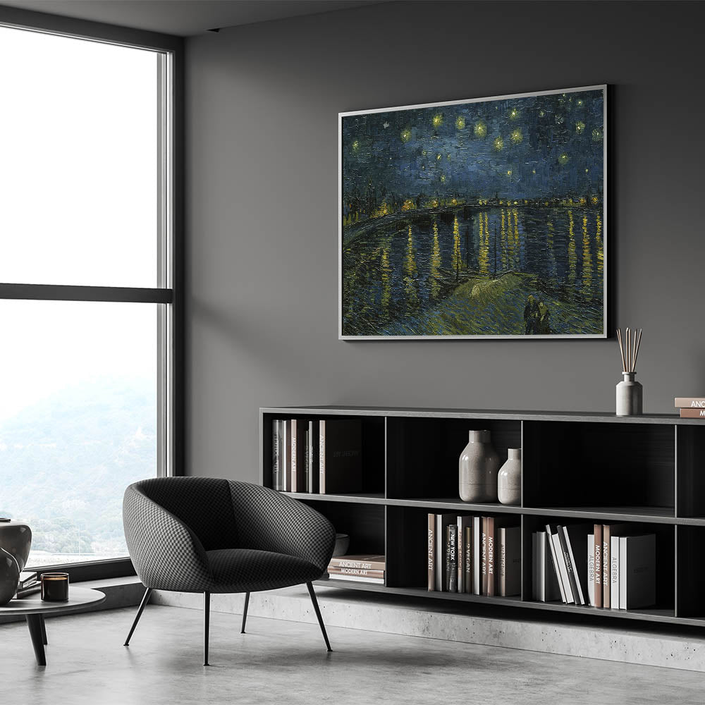 Add a touch of elegance to your home with this stunning Impressionist masterpiece, Starry Night on the Rhône, by Vincent van Gogh. This iconic artwork captures the serenity of a starlit evening over the Rhône River, blending deep blues and shimmering golden reflections in a breathtaking display of Impressionist style decor.