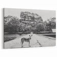 Black and White Sri Lanka Art - Dog and Sigiriya Rock Canvas Print