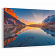 Embrace the awe-inspiring beauty of the Himalayas with this breathtaking sunrise wall art. The image captures the first rays of sunlight illuminating the towering peaks, with the glowing reflection in a still mountain lake creating a perfect mirror of the rugged landscape. The vibrant oranges and yellows of the sunlight blend harmoniously with the deep blues of the sky and the water, making this piece a captivating addition to any room. Ideal for nature lovers and those looking to bring the peaceful beauty of the Himalayas into their living spaces.