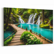 Discover the hidden beauty of Thailand with our "Thai Waterfall Paradise - Lush Forest Canvas Art." This artwork transports you to a serene Thai forest, where a breathtaking waterfall cascades into a crystal-clear turquoise pool, surrounded by lush greenery and vibrant flowers.