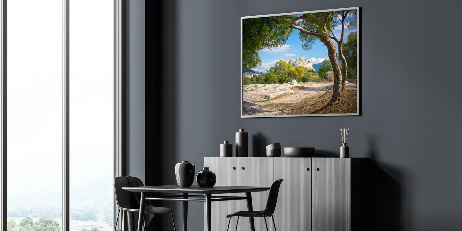This striking artwork blends nature and history, creating a peaceful ambiance that reminds you of the glory of Athens. Whether placed in your living room, study, or office, this piece brings a cultural depth that enriches any space.