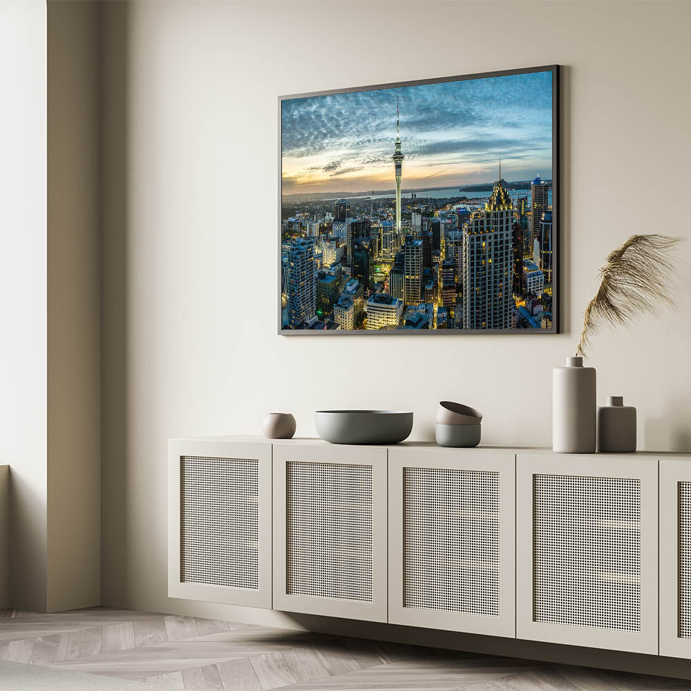 - Sweeping City Views: The wide panoramic format offers a comprehensive view of Auckland's cityscape, making it a captivating focal point.