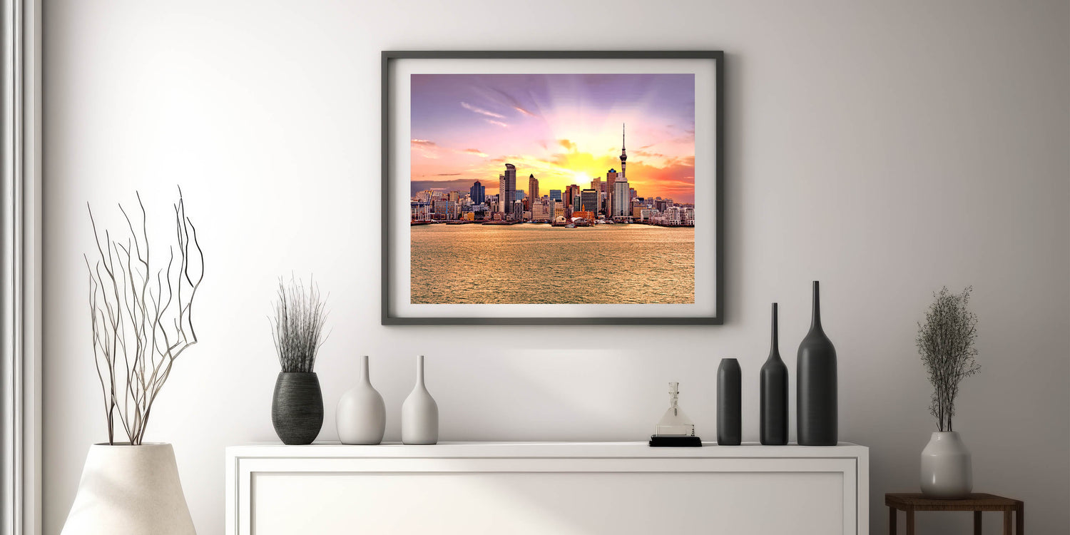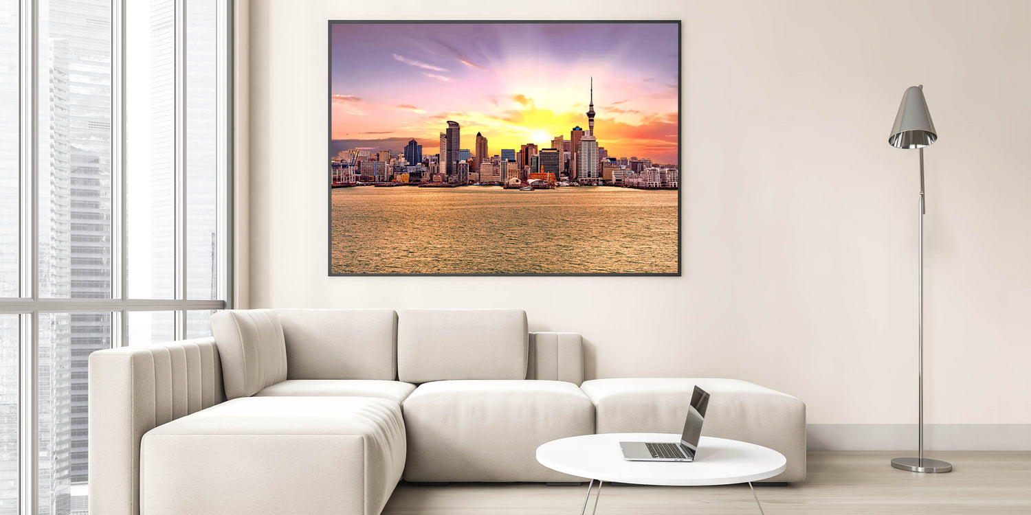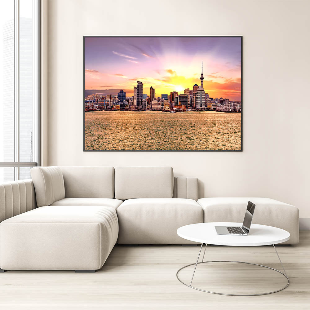 This canvas is perfect for those who wish to add a sophisticated yet vibrant element to their interiors, capturing the essence of Auckland during one of its most picturesque times of day.