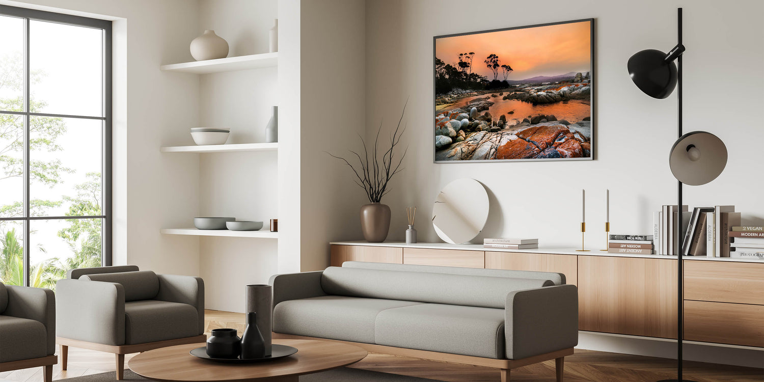 This artwork is perfect for those who love nature, sunsets, or the untamed beauty of Tasmania’s coasts. Whether for your living room, bedroom, or office, this piece will bring warmth and inspiration to your space, showcasing the breathtaking beauty of the Bay of Fires.