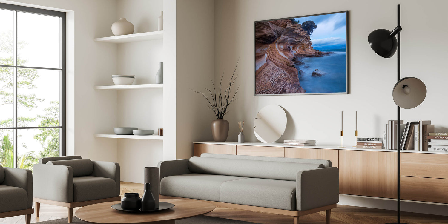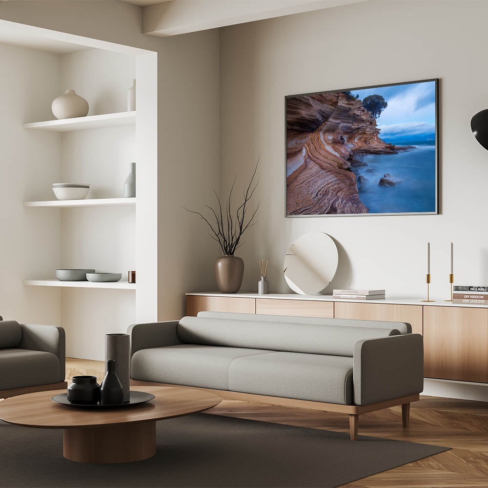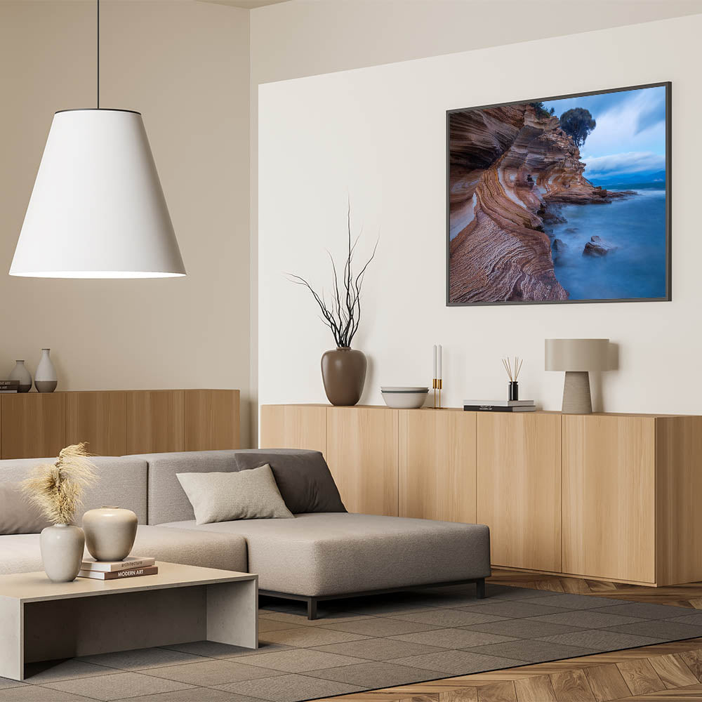 - High-quality Tasmania art prints available in stretched canvas and framed canvas formats.