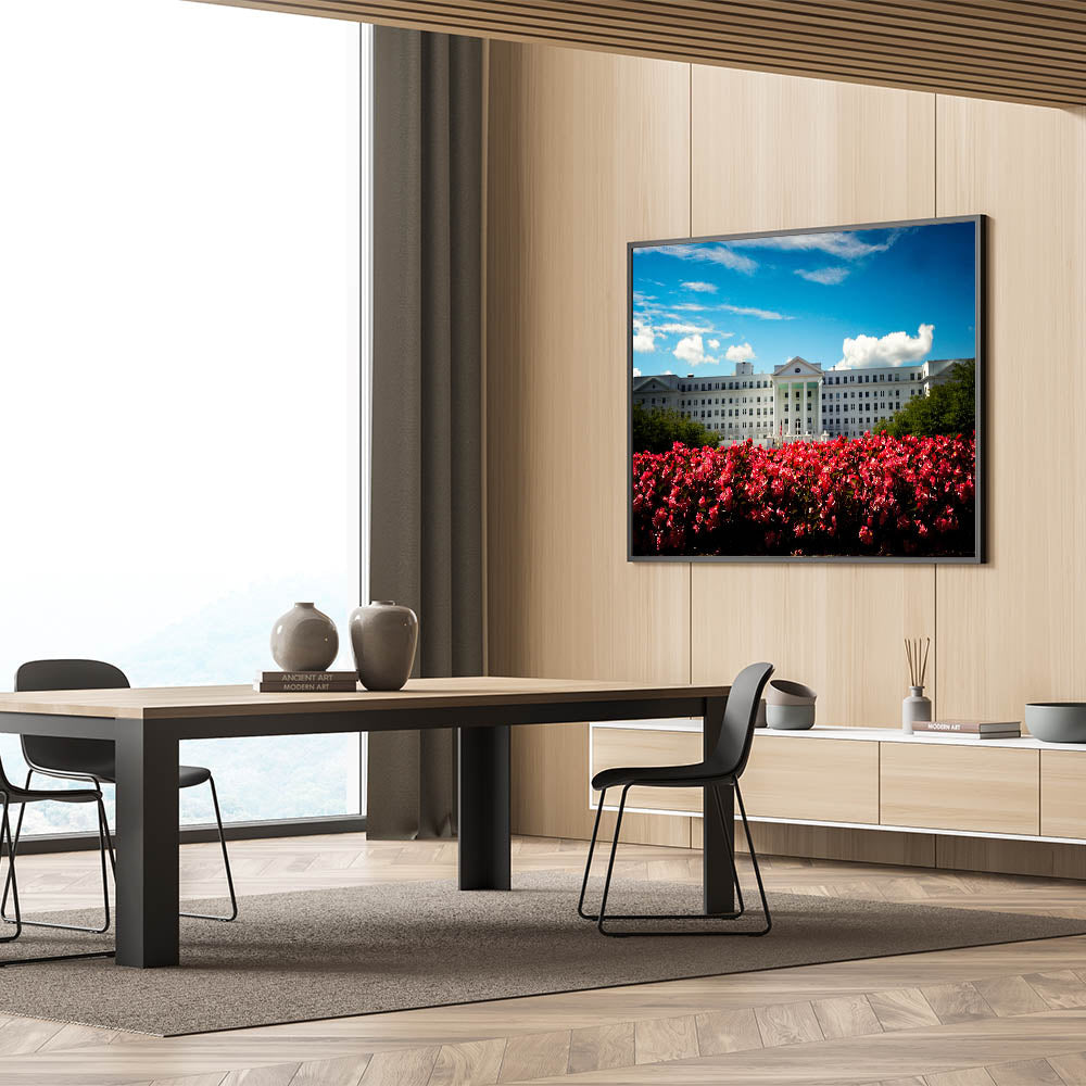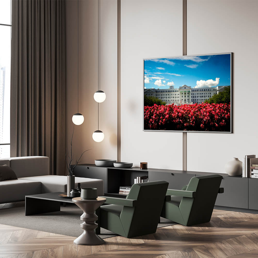 Capture the beauty and elegance of Austria’s architecture with this stunning art piece featuring a majestic white palace set against a vibrant blooming garden. The rich contrast between the vivid flowers and the grand palace brings life to this Austrian landscape art, making it a perfect choice for enhancing the beauty of any room. Available in various formats like Stretched Canvas, Framed Canvas, and Acrylic Glass, this piece will add a touch of Austrian cultural art and charm to your home or office.