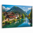 Capture the tranquil beauty of Austria's alpine landscapes with this stunning wall art featuring a serene village by a river, framed by majestic mountains. This artwork showcases the natural beauty and peaceful atmosphere of Austrian countryside life, with charming homes, vibrant flowers, and crystal-clear waters. It’s the perfect piece for anyone who appreciates scenic Austria travel art prints and the calming essence of nature.