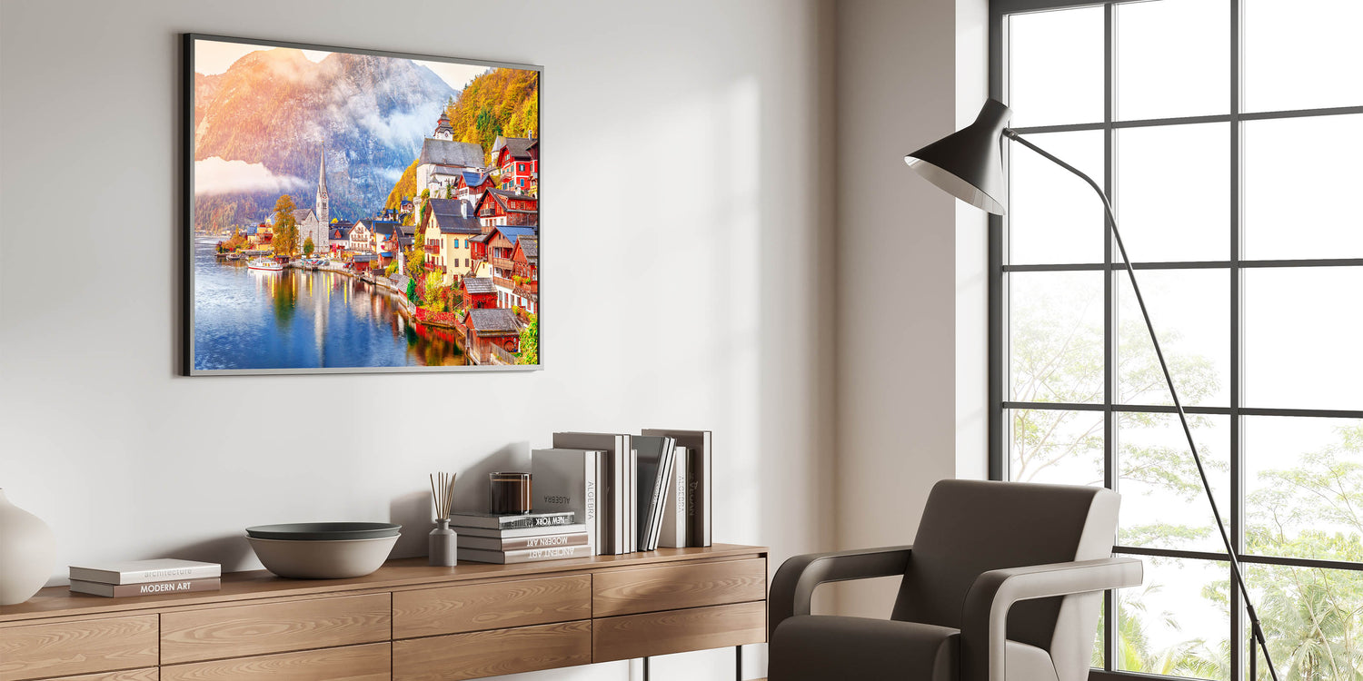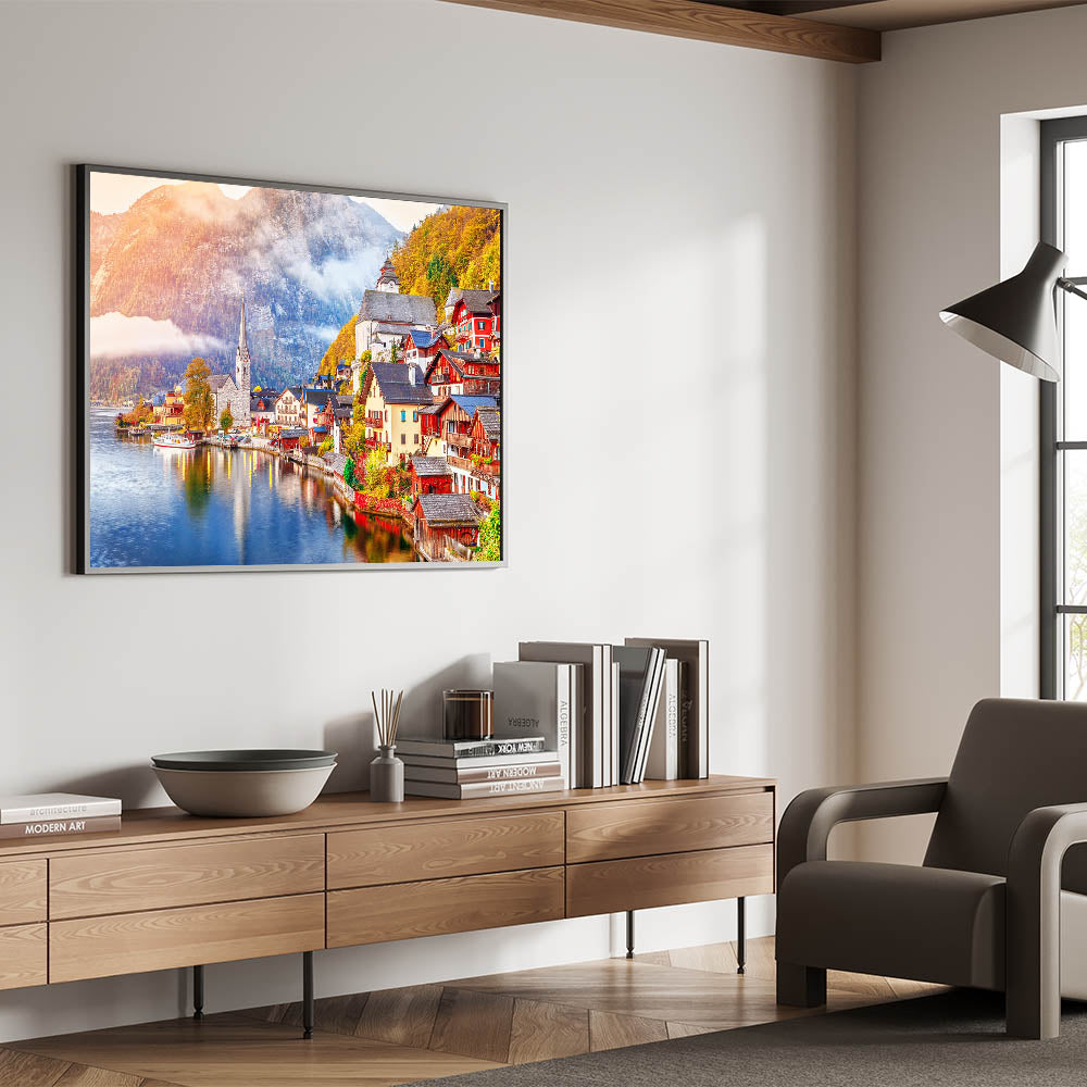 • Art Style: Austrian Alps photography highlighting Hallstatt village