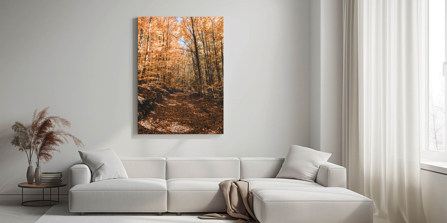 Create a cozy and inviting atmosphere with this fall canvas art, celebrating the golden beauty of autumn forests. Whether displayed as a centerpiece or paired with complementary seasonal artwork, this autumn wall art transforms your space into a peaceful retreat.