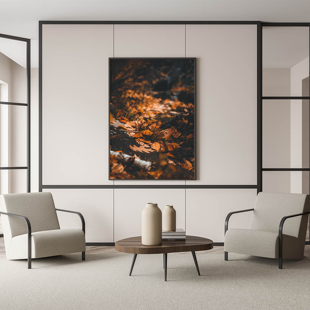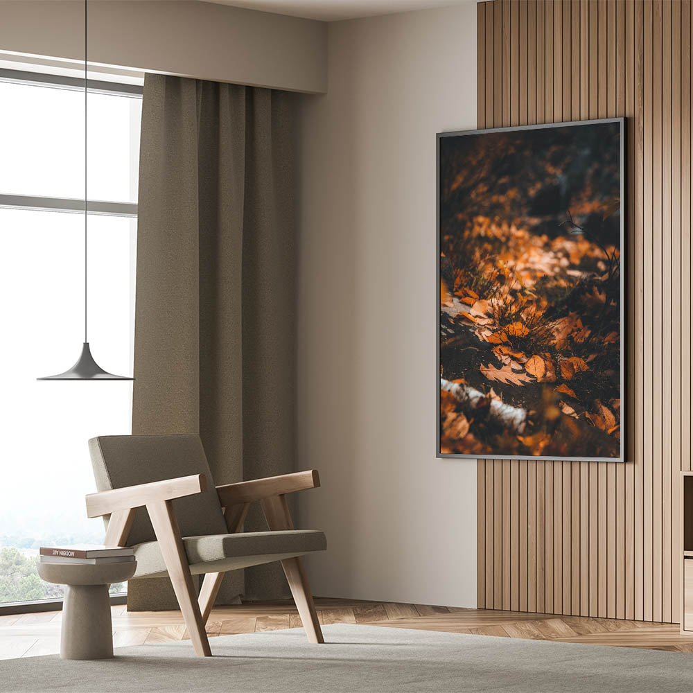 Capture the essence of autumn with this Fall Wall Art, featuring a peaceful forest floor blanketed in golden-orange leaves. The warm tones and rich textures of this Autumn Wall Art evoke a sense of nostalgia, making it a timeless addition to any space.