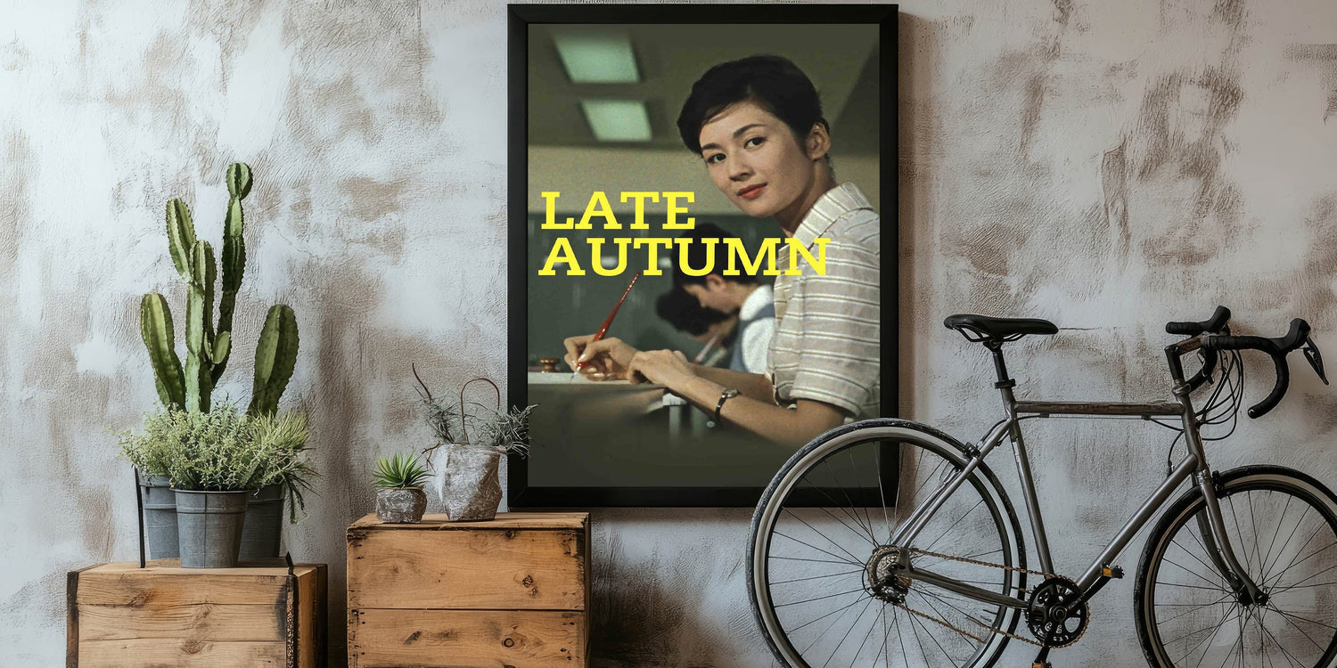 Immerse yourself in the timeless beauty of 1960s Japanese cinema with this Late Autumn (1960) vintage movie poster. Directed by Yasujirō Ozu, this touching drama explores themes of family, tradition, and change with elegant cinematography and a masterful narrative. This authentic 1960s cinema poster features a soft color palette and a captivating portrait of the film’s lead actress, making it a perfect piece for film lovers and collectors.