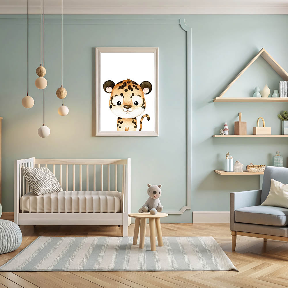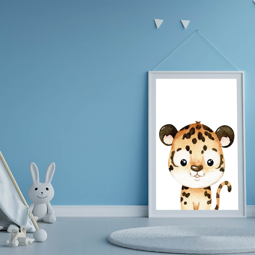 Brighten up your child's space with this adorable leopard nursery wall art. Featuring a charming watercolor leopard with soft brown and orange hues, this artwork is perfect for baby room decor. Whether you're designing a safari-themed nursery or looking for unique children’s wall art, this print is a fun and stylish addition to any kids' room art prints collection.