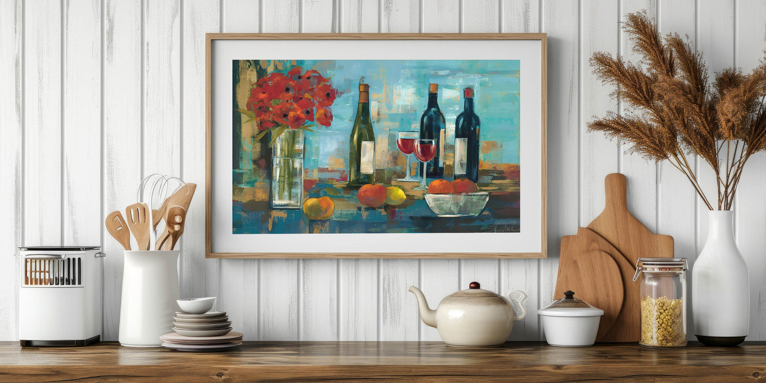 - Timeless wine wall decor featuring rich colors and expressive brushstrokes
