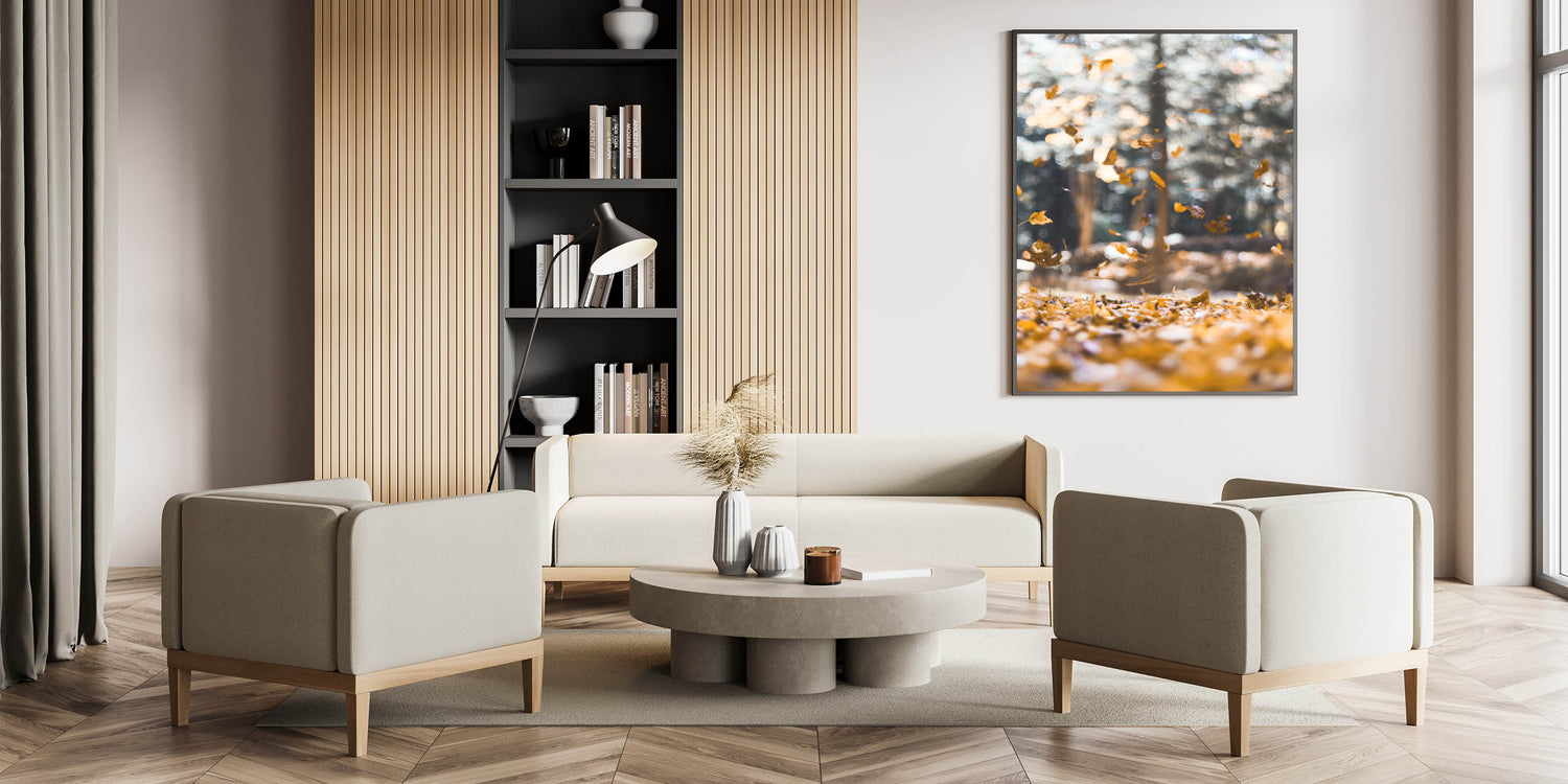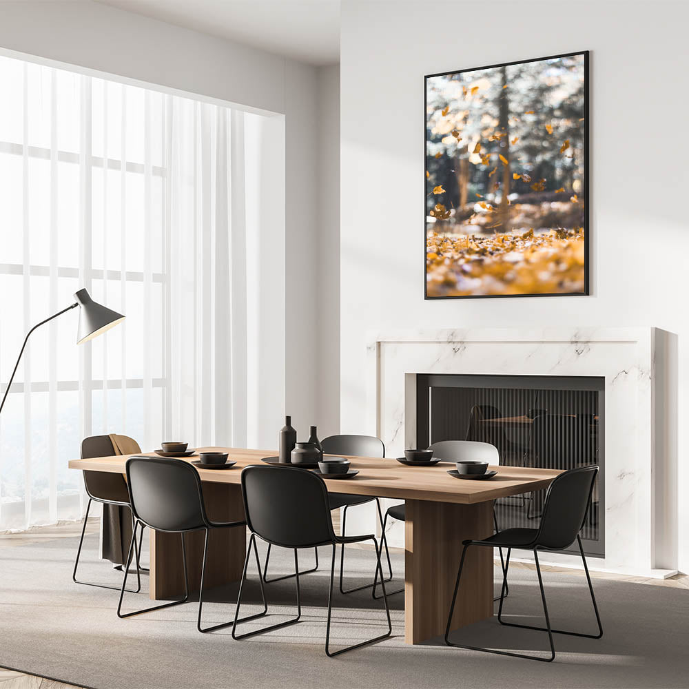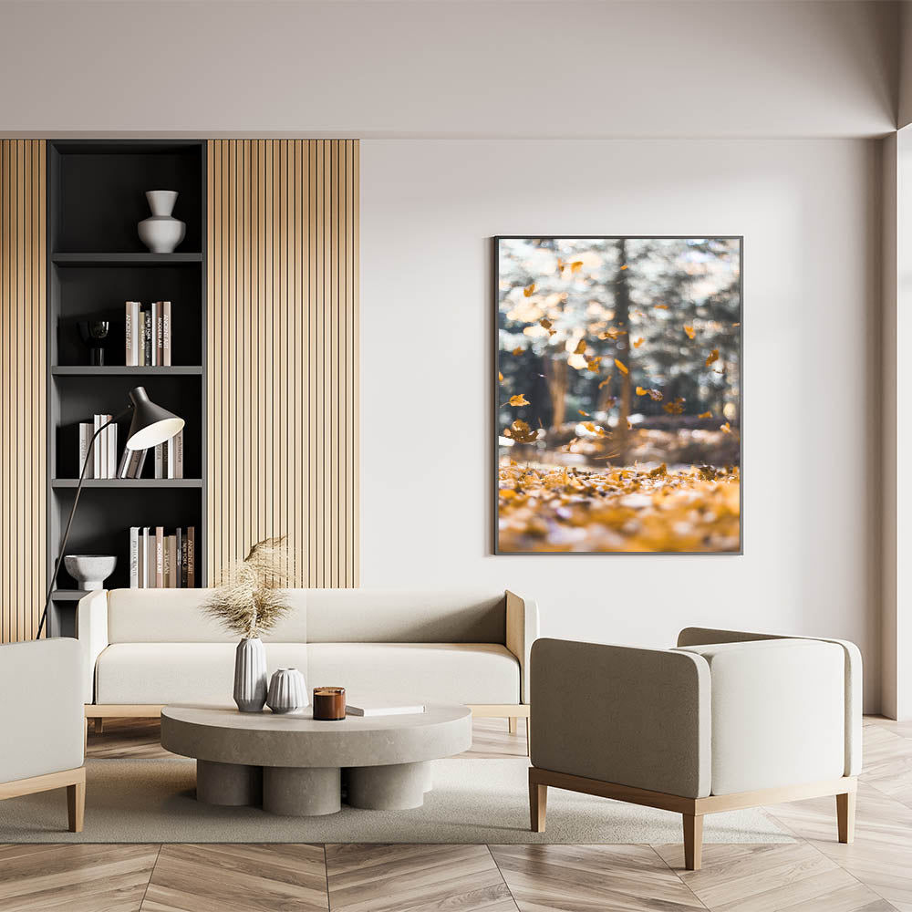 Bring the charm of autumn indoors with this fall canvas art, celebrating the beauty of falling leaves in a golden forest. Whether as a centerpiece or a complement to seasonal decor, this autumn wall art transforms any room into a cozy retreat.