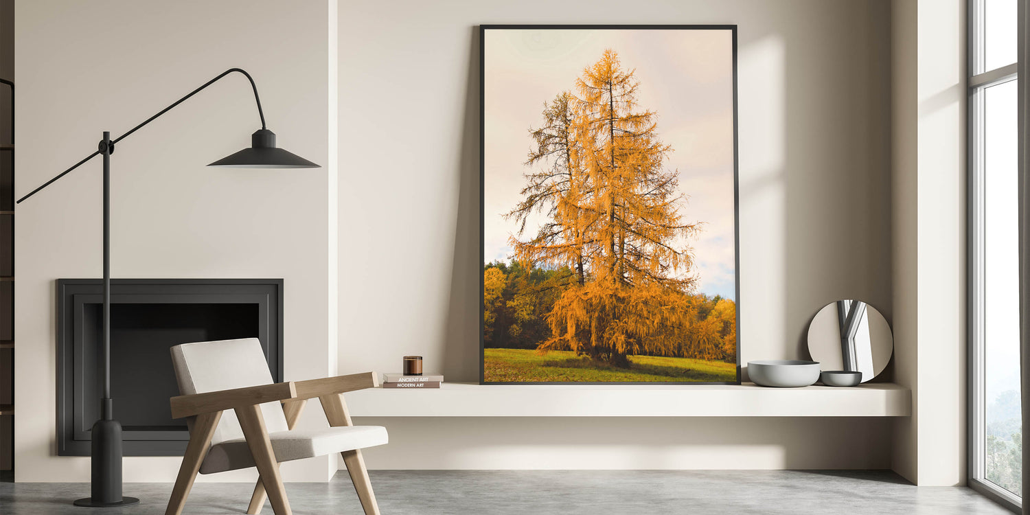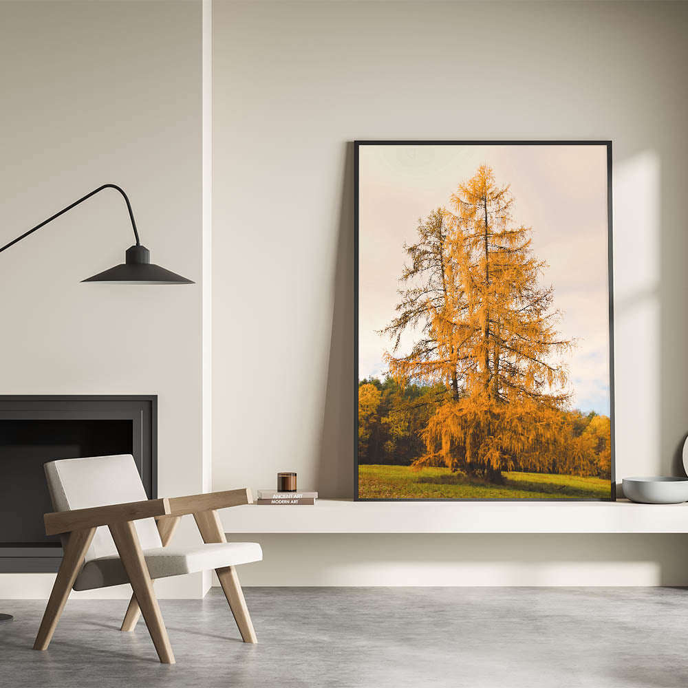 Golden Autumn Tree in Meadow – Fall Wall Art for Nature Lovers