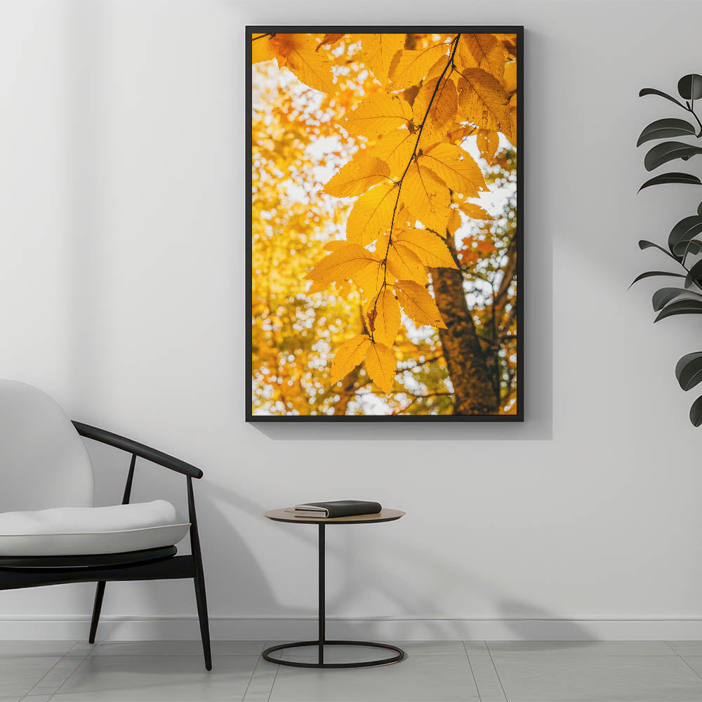 Bring the warmth of autumn into your home with this captivating fall wall art, featuring golden yellow leaves illuminated by soft sunlight. The vibrant hues and delicate textures create a dreamy, nature-inspired aesthetic, making this autumn canvas art a perfect addition to any seasonal decor. The glowing leaves contrast beautifully with the blurred bokeh background, adding depth and elegance to the composition.