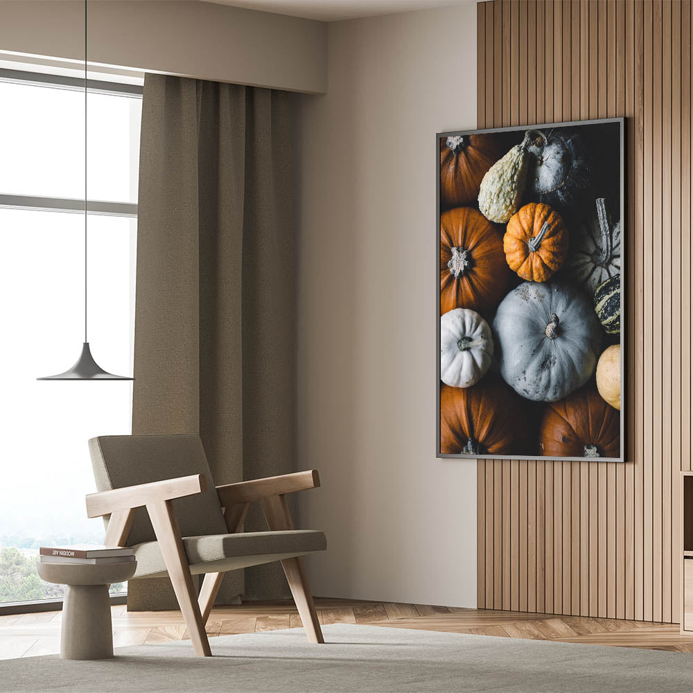 Whether displayed for Thanksgiving, autumn gatherings, or year-round rustic charm, this autumn wall art print adds depth, warmth, and texture to any space. Pair it with natural wood accents and warm lighting for an inviting seasonal ambiance.
