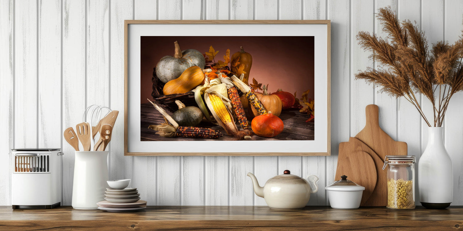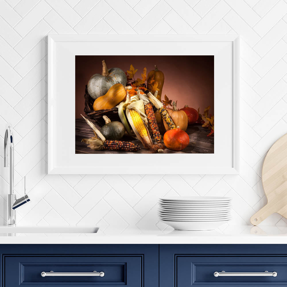 Ideal for farmhouse and contemporary kitchens alike, this piece is available in multiple formats, including canvas art for kitchen, framed kitchen prints, and acrylic kitchen artwork. The detailed textures and rich fall colors bring warmth to your space, capturing the essence of seasonal charm in a timeless composition.