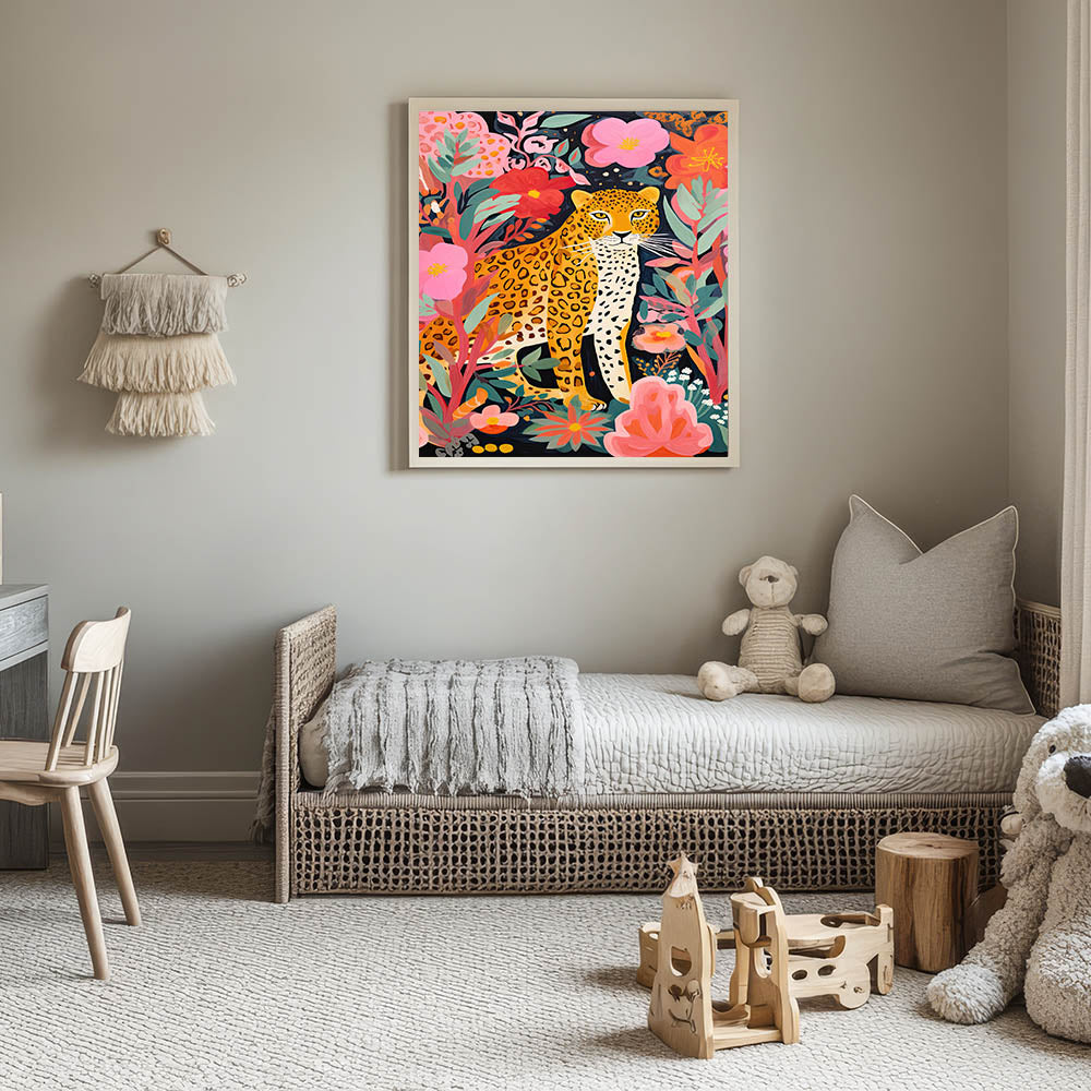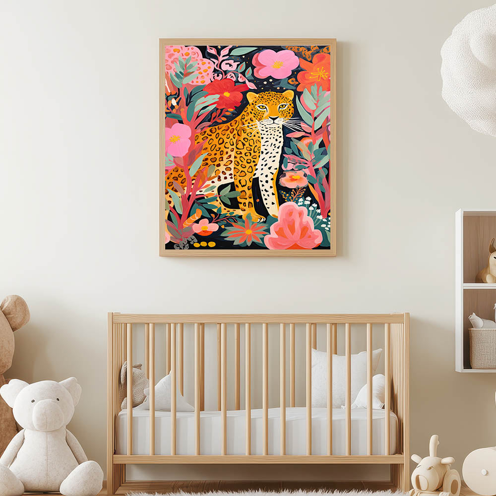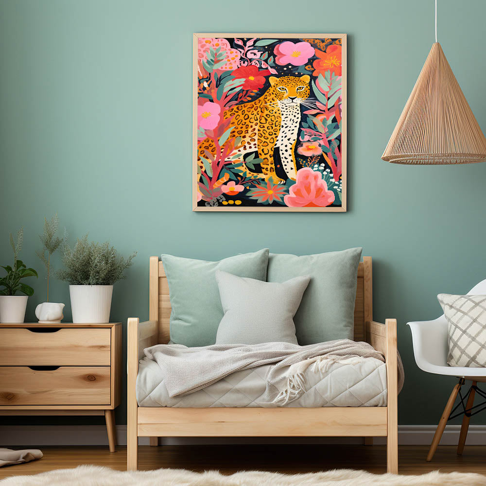 Bring the wild beauty of the jungle into your child’s space with this kids room wall art, featuring a stunning leopard surrounded by vibrant floral elements. This children’s wall art print is a perfect blend of adventure and nature, making it ideal for nurseries, playrooms, and bedrooms.