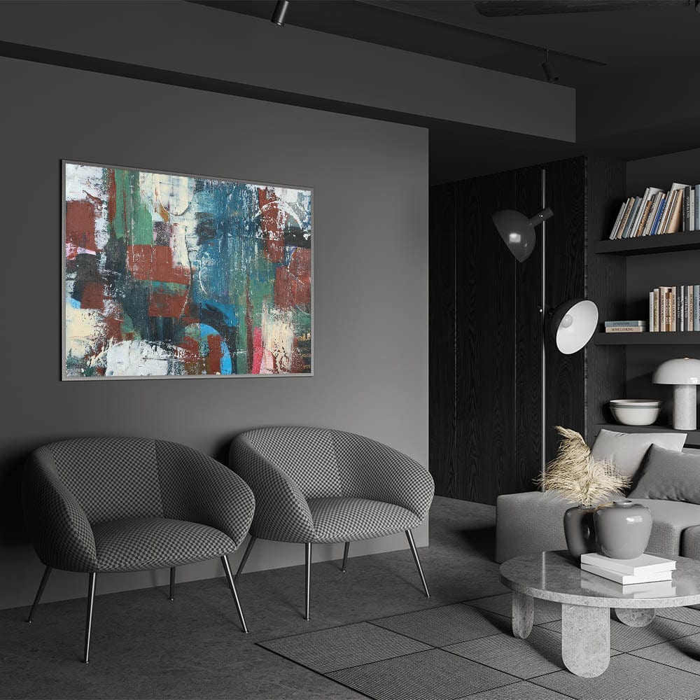 This modern abstract painting is designed to enhance any space with its bold yet sophisticated aesthetic. Whether placed in a living room, office, or creative workspace, the raw textures and earthy tones of this abstract wall art create a visually engaging focal point. Elevate your décor with this striking blend of color and movement.