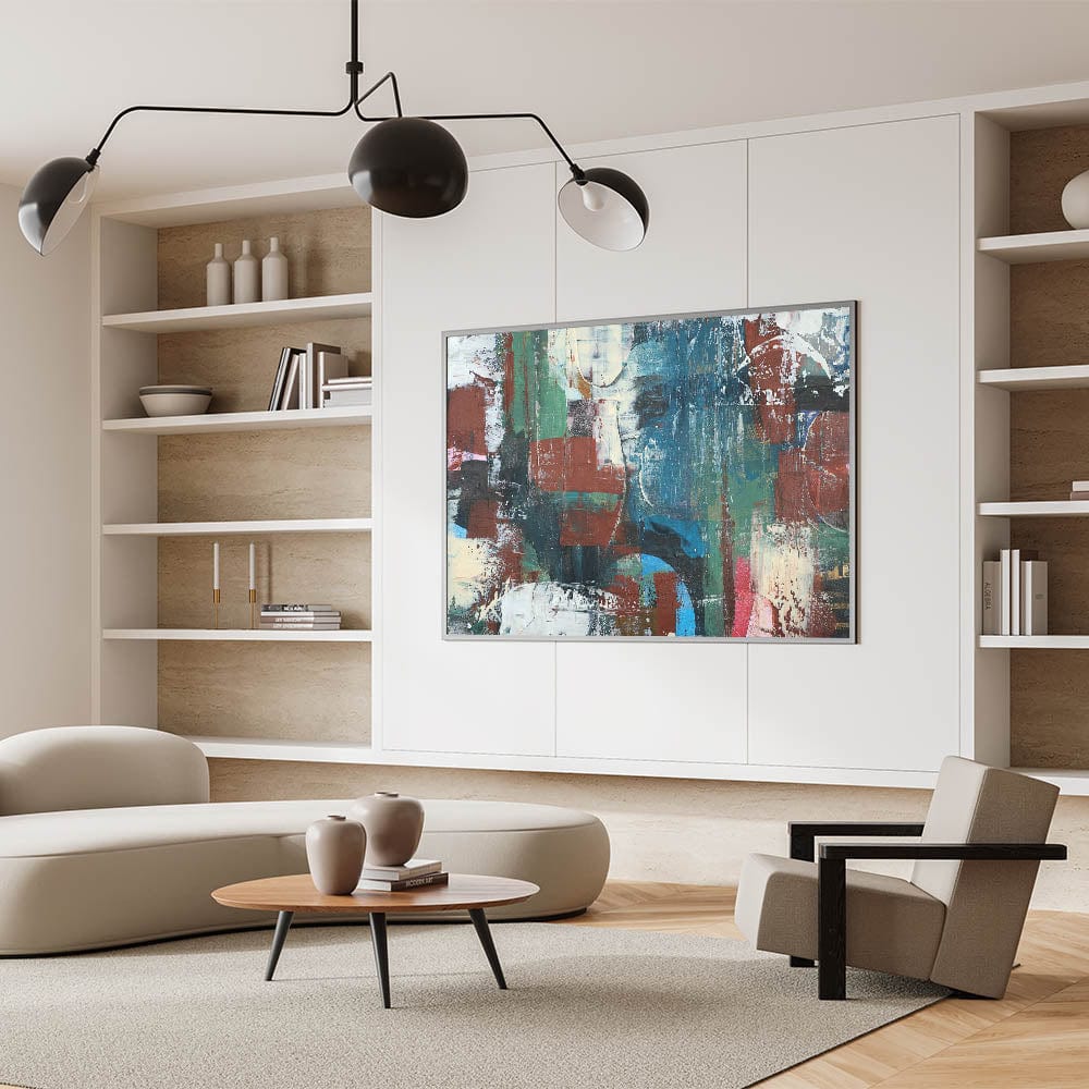 - High-quality abstract canvas wall art, available in stretched canvas, framed canvas, acrylic glass, and fine art prints.