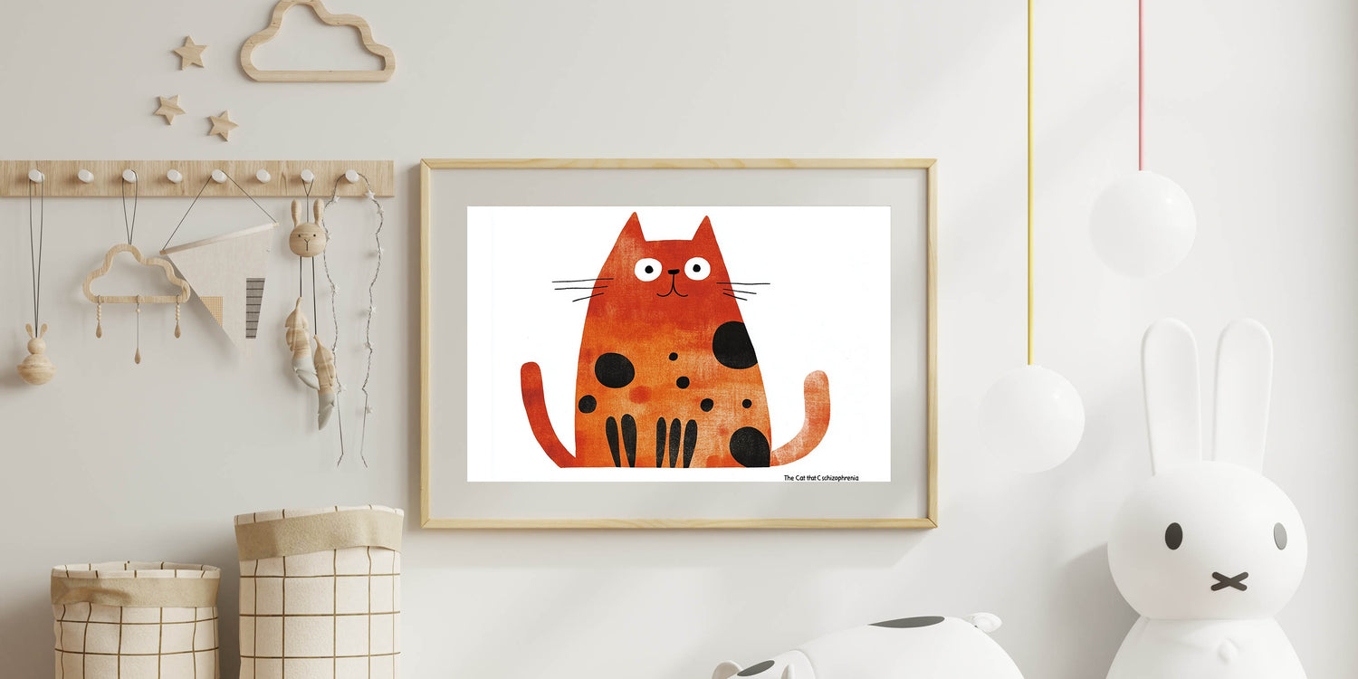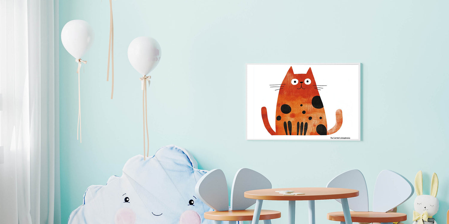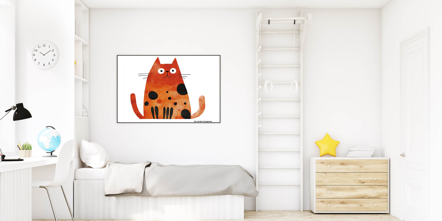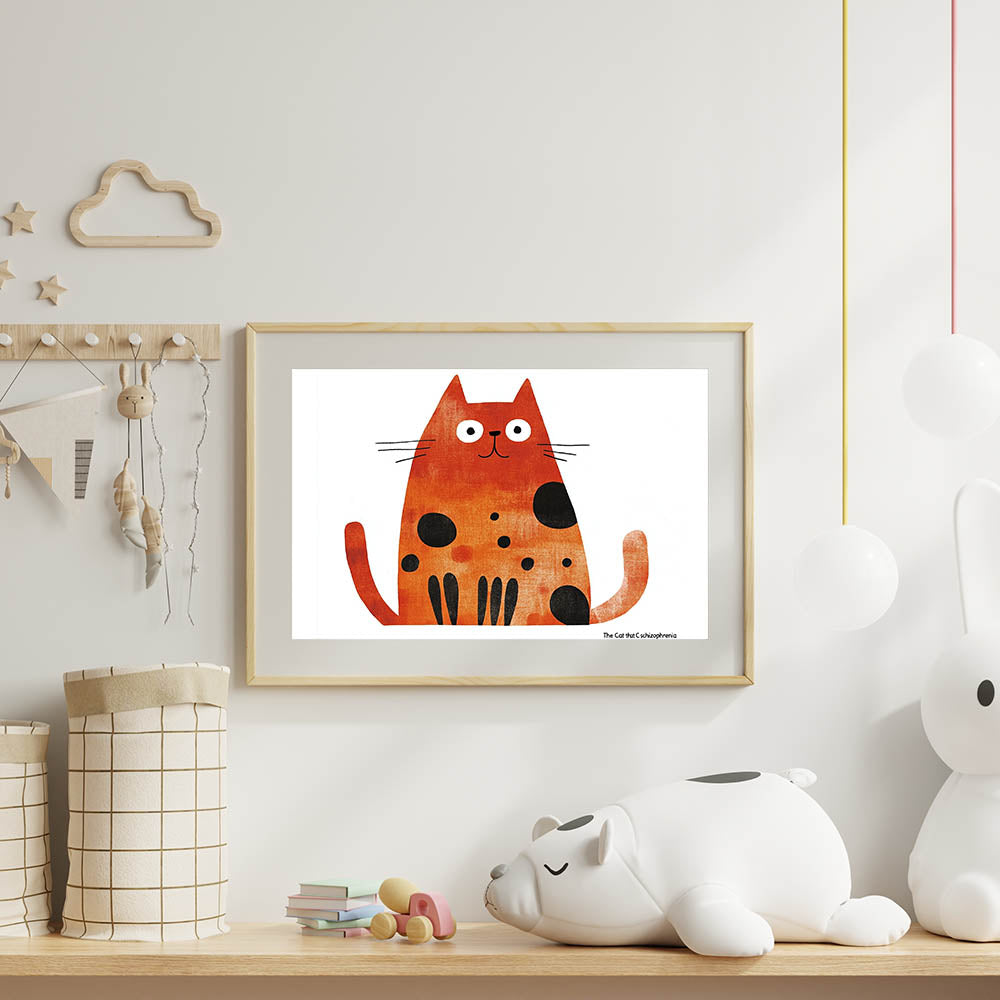 Brighten up your child’s space with this Playful Orange Cat Boys Wall Art! Featuring a whimsical, hand-drawn cat in vibrant orange with bold black spots, this Kids Wall Art Print adds a fun and cheerful touch to any boys' bedroom, playroom, or nursery. The artistic, textured design gives the illustration a charming and modern feel, making it a delightful addition to any young animal lover’s space.
