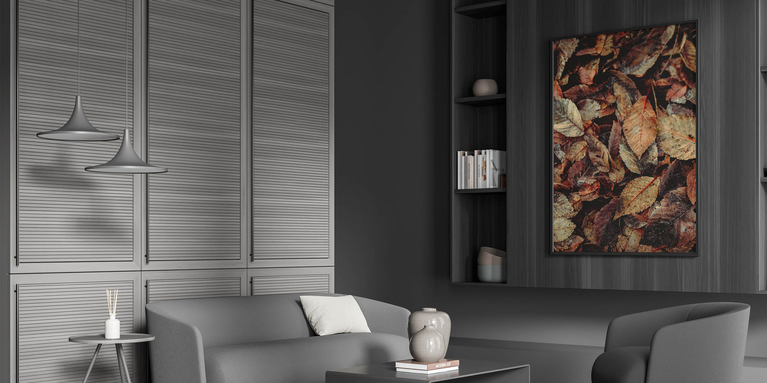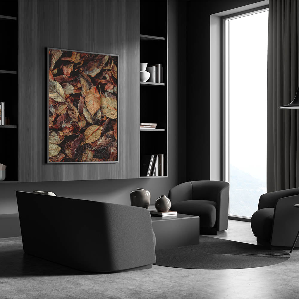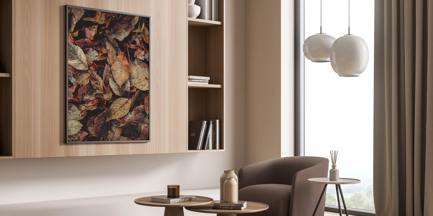 Immerse yourself in the beauty of fall with this fall wall art featuring a stunning close-up of rustic autumn leaves. The intricate details of the crisp, weathered foliage in rich shades of brown, beige, and muted red capture the essence of the season. This autumn wall art is a perfect addition to rustic, farmhouse, or nature-inspired interiors, bringing warmth and texture to any space.